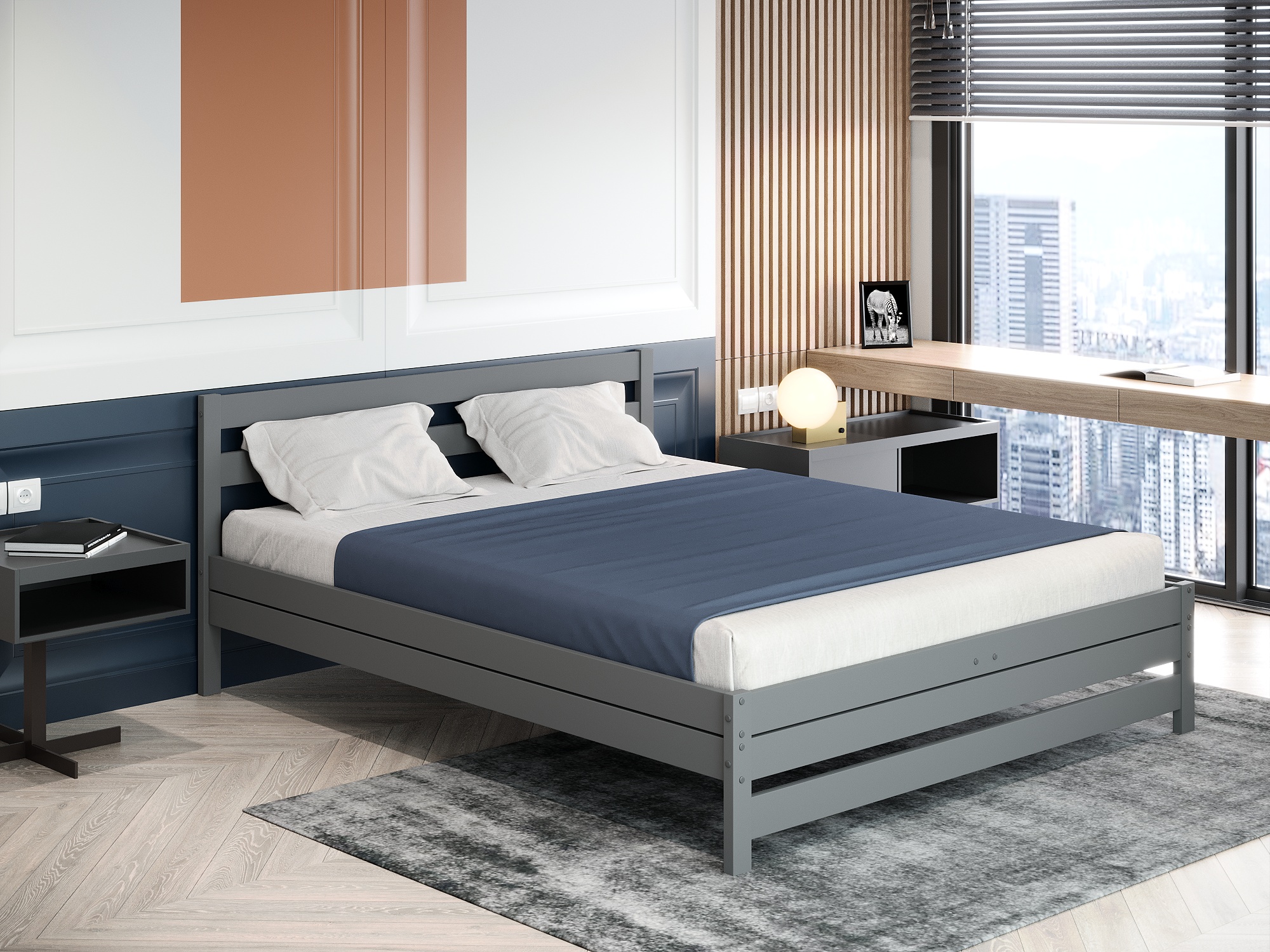 Кровать двуспальная "MAMAMIA 3" 180x200 (Серый)