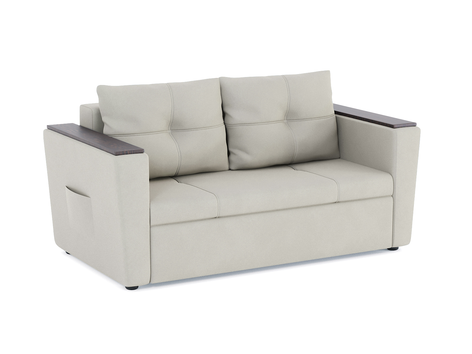 Механизм трансформации еврокнижка трехсекционная. Наполнение высокоэластичный ППУ. Жесткость-средняя. Чехлы подушек несъемные, наполнение-крошка ППУ. Каркас ДСП, ДВП, ЛДСП, фанера, брус хвойных пород. Спальное место 1900х1400. Есть небольшой ящик для белья. Высота сиденья 420мм. Глубина сиденья без подушек 640мм. В комплекте 2 большие подушки.
