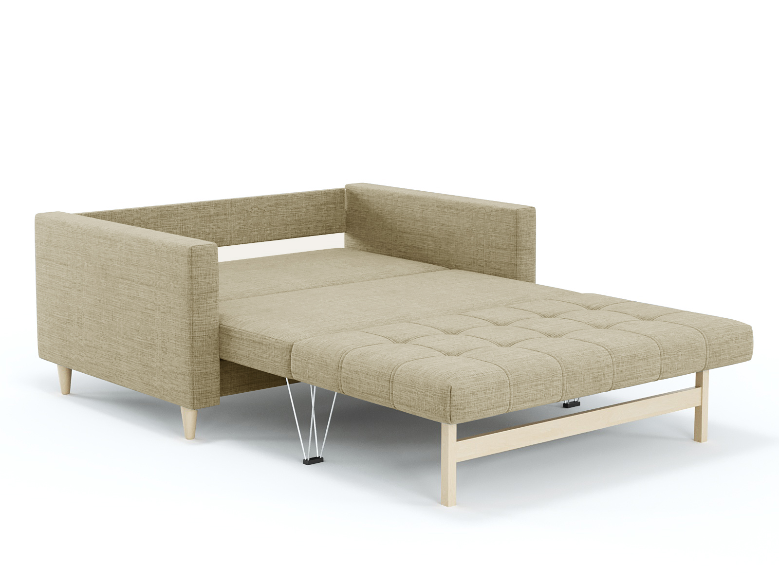 Механизм трансформации еврокнижка трехсекционная. Наполнение высокоэластичный ППУ. Жесткость-средняя. Каркас-ДСП, ДВП, ЛДСП, фанера, брус хвойных пород. Есть небольшой ящик для белья. Спальное место 1900х1350мм. Глубина сиденья 580мм. Высота сиденья 440мм. Ширина подлокотника-100мм. Высота спинки от сиденья 400мм. Высота локтя от пола 670мм. Высота опоры 100мм.