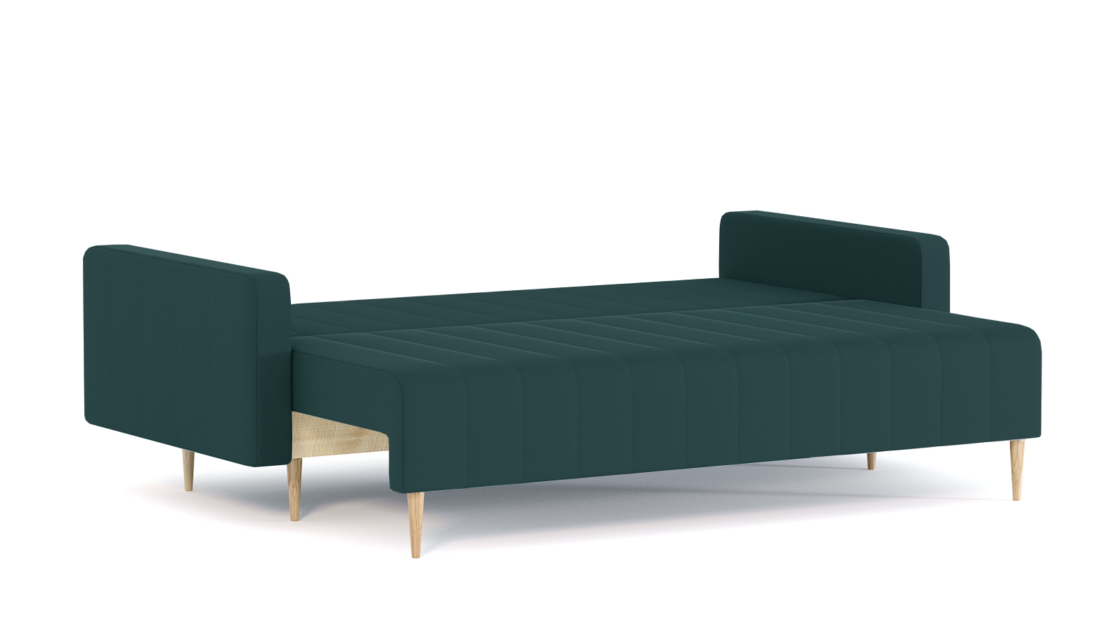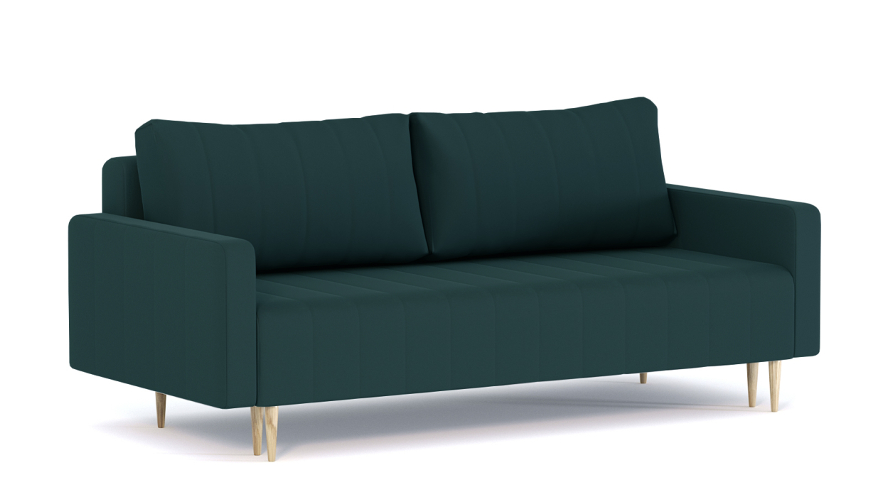 Механизм трансформации-пантограф. Наполнение высокоэластичный ППУ. Жесткость-средняя. Чехол подушек съемный, наполнение-крошка ППУ. Каркас ДСП, ДВП, ЛДСП, фанера, брус хвойных пород. Спальное место 1950х1440. Ящик для белья есть. Опоры массив березы. Высота опоры 150мм. Высота сиденья 420мм. Глубина сиденья без подушек 760мм. В комплекте 2 большие подушки.
