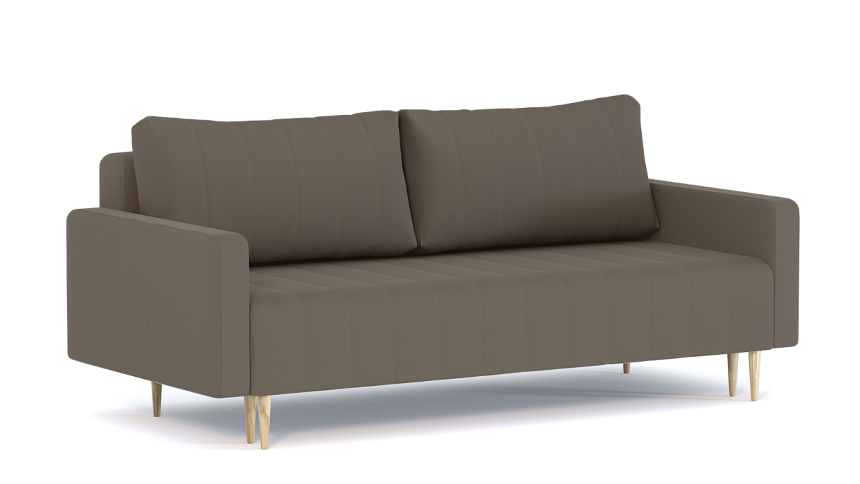 Механизм трансформации-пантограф. Наполнение высокоэластичный ППУ. Жесткость-средняя. Чехол подушек съемный, наполнение-крошка ППУ. Каркас ДСП, ДВП, ЛДСП, фанера, брус хвойных пород. Спальное место 1950х1440. Ящик для белья есть. Опоры массив березы. Высота опоры 150мм. Высота сиденья 420мм. Глубина сиденья без подушек 760мм. В комплекте 2 большие подушки.