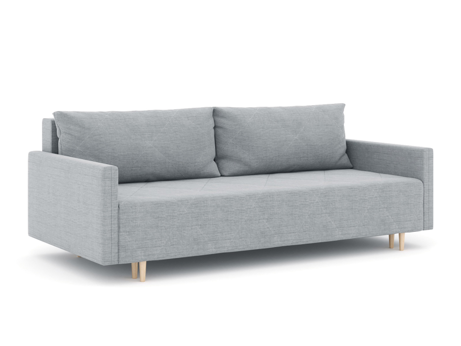 Механизм трансформации еврокнижка. Наполнение высокоэластичный ППУ. Жесткость-средняя. Чехол подушек съемный, наполнение-крошка ППУ. Каркас ДСП, ДВП, ЛДСП, фанера, брус хвойных пород. Спальное место 1950х1440. Ящик для белья есть. Высота сиденья 450мм. Глубина сиденья без подушек 760мм. В комплекте 2 большие подушки. Высота опры 150мм.