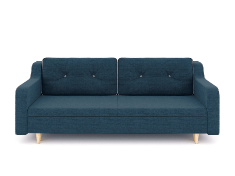 Механизм трансформации еврокнижка-пантограф. Наполнение высокоэластичный ППУ. Жесткость-средняя. Чехлы подушек несъемные, наполнение-крошка ППУ. Каркас ДСП, ДВП, ЛДСП, фанера, брус хвойных пород. Спальное место 1950х1440. Ящик для белья есть. Глубина сиденья без подушек 760мм. Опоры массив березы, высота 150мм. Высота сиденья 42мм. В комплекте 2 большие подушки.