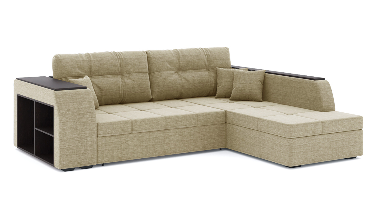 Диван-кровать угловой Брюссель дельфин, рогожка (Темно-бежевый)
