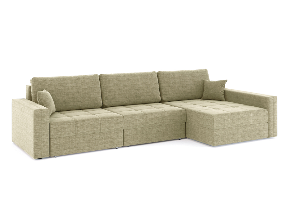 Механизм трансформации еврокнижка. Наполнение высокоэластичный ППУ. Спальное место 2940х1670. Ящик для белья в основании и в оттоманке. Глубина сиденья без подушек 960мм. Высота сиденья 450мм. Чехлы подушек съемные, наполнение крошка ППУ. В комплекте 3 большие подушки и 2 декоративные.