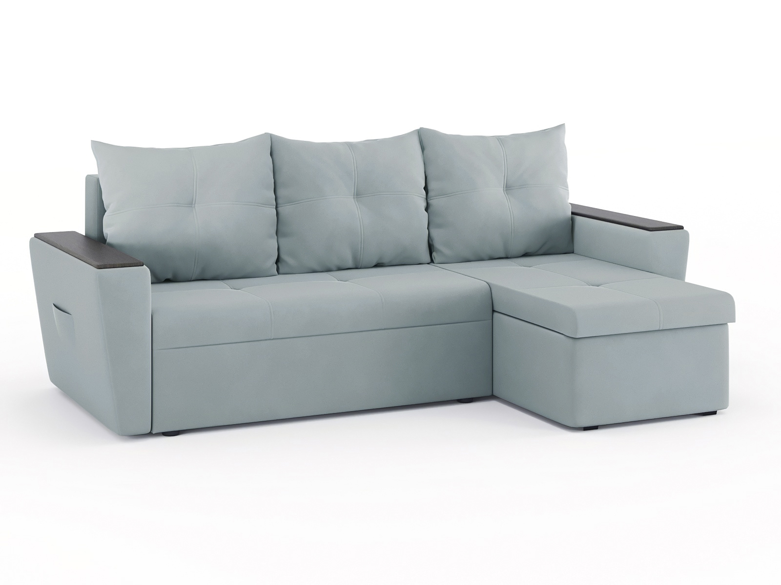 Диван-кровать угловой Дубай Майами еврокнижка трехсекционная, велюр (Светло-серый)