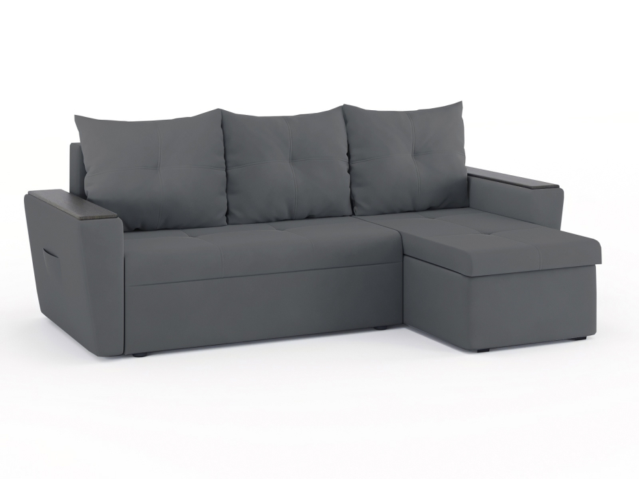 Диван-кровать угловой Дубай Майами еврокнижка трехсекционная, велюр (Темно-серый)