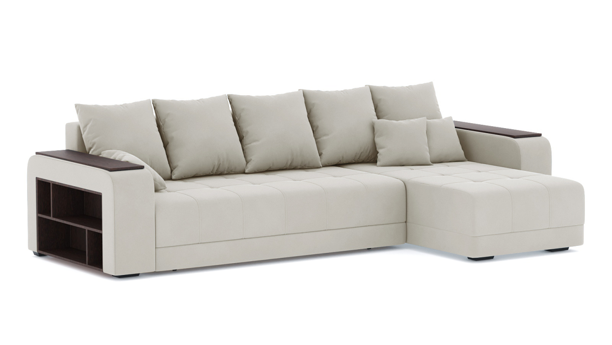 Диван-кровать угловой Дубай еврокнижка, велюр (Крем)