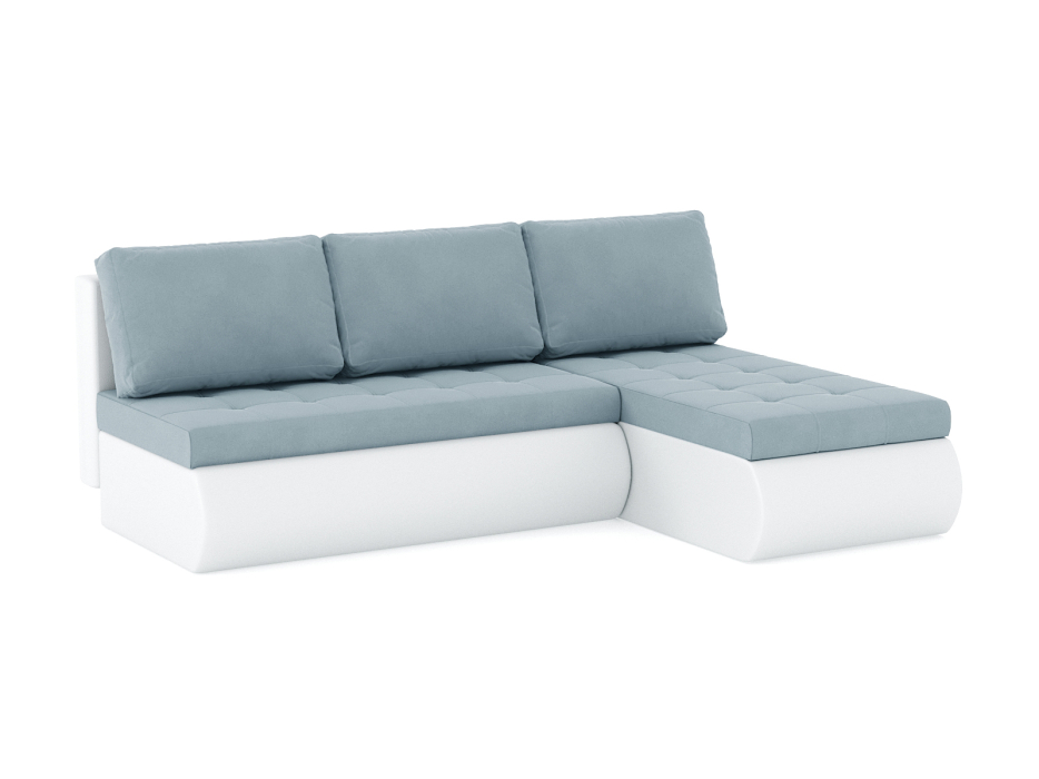 Диван-кровать угловой Кормак без подлокотников, велюр /кож.зам (Голубой)