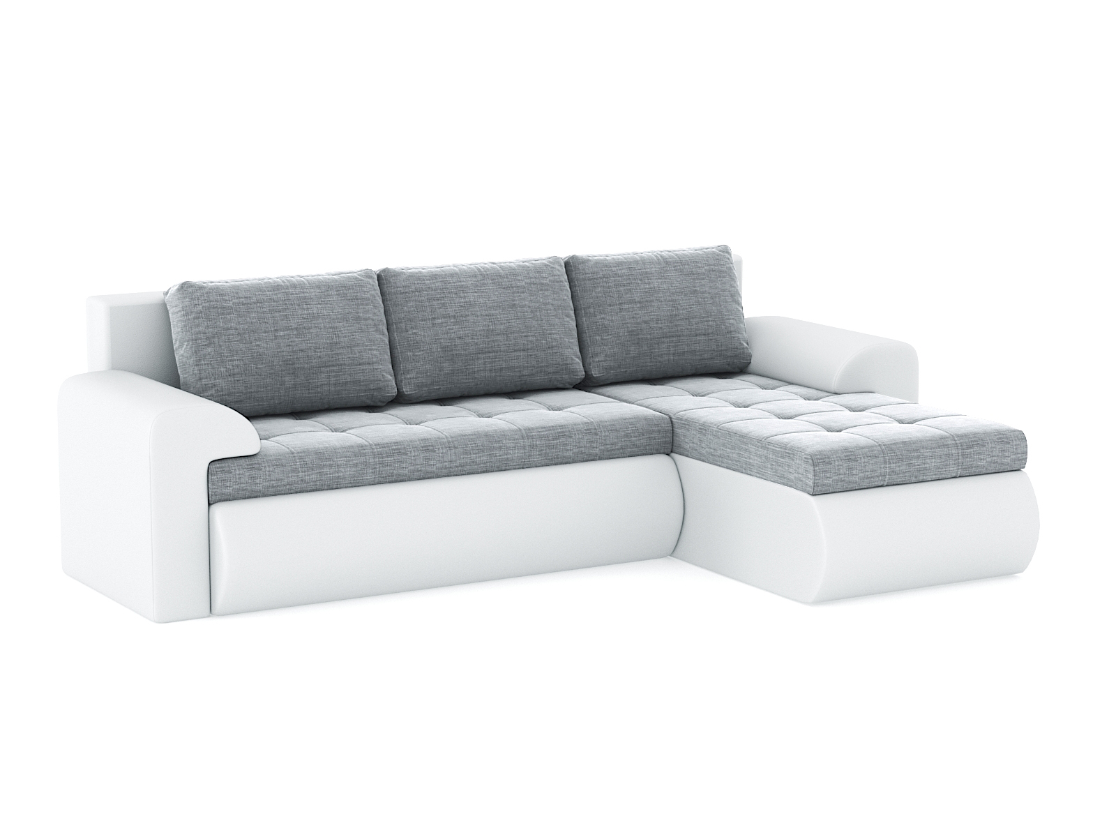 Диван-кровать угловой Кормак с подлокотниками, рогожка +кож. зам. (Светло-серый)