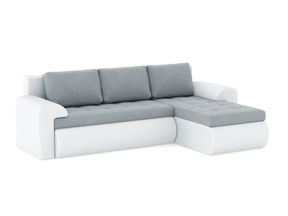 Диван-кровать угловой Кормак с подлокотниками, велюр+кож.зам. (Светло-серый)