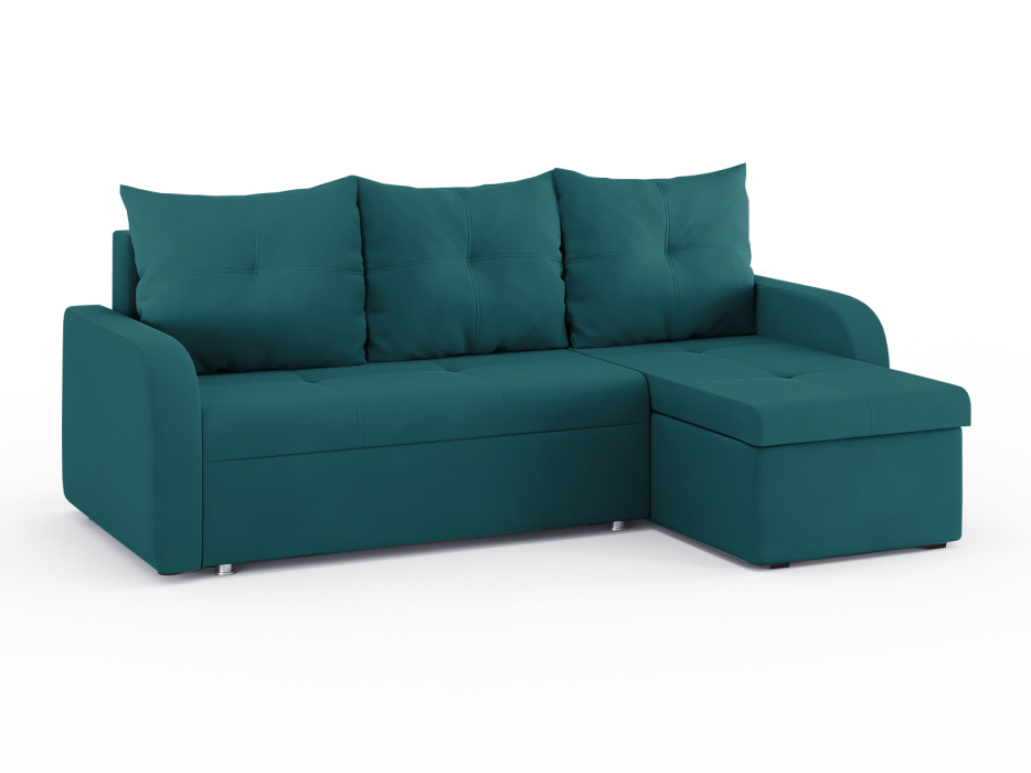 Диван-кровать угловой Мини Люкс трехсекционная еврокнижка, велюр (Изумрудный)