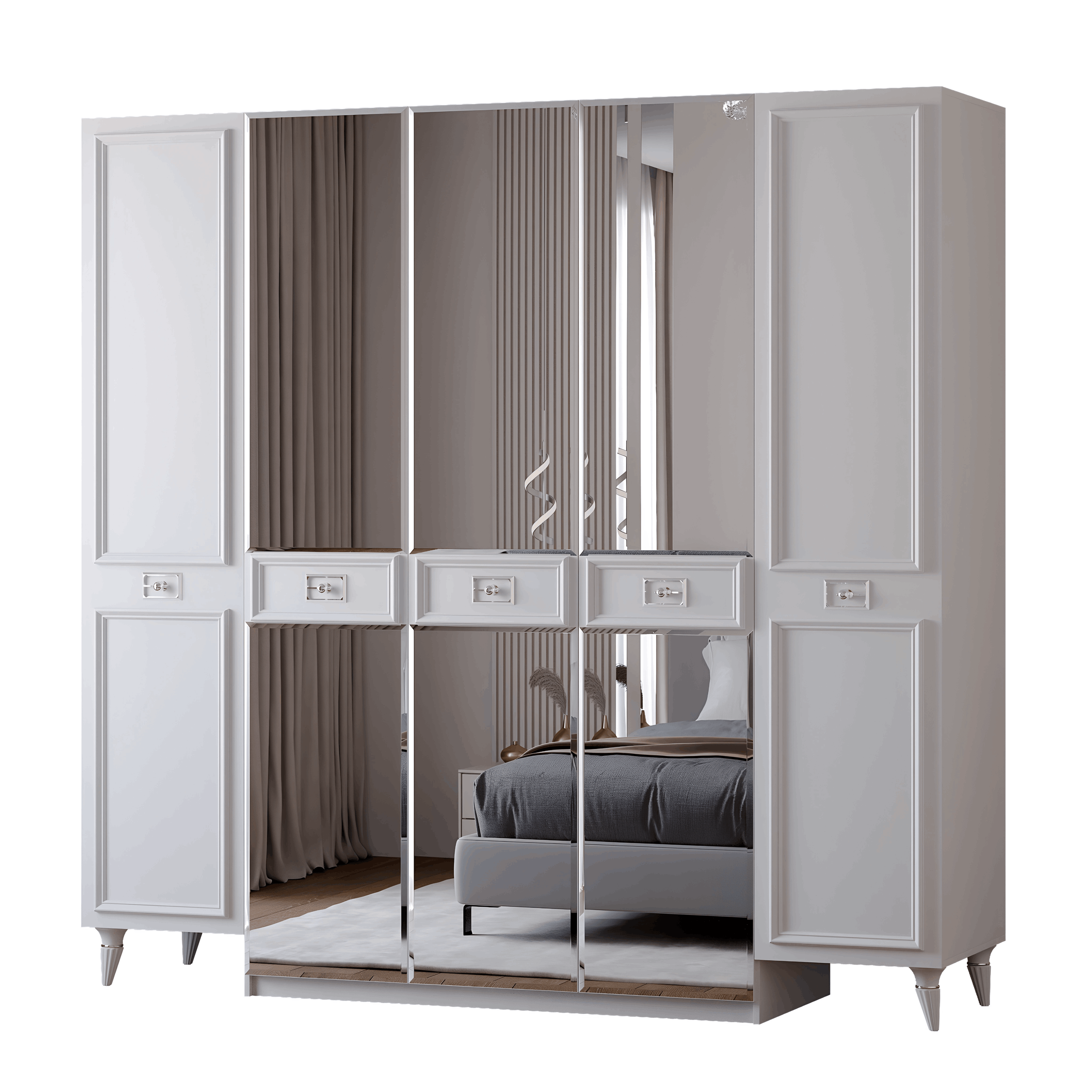 Неоклассический Стиль: С этим шкафом вы возвращаетесь в эпоху изысканных классических форм и изящества. Оригинальный дизайн воплощает в себе лучшие элементы неоклассического стиля, что делает его неотъемлемой частью искусства в вашей спальне.