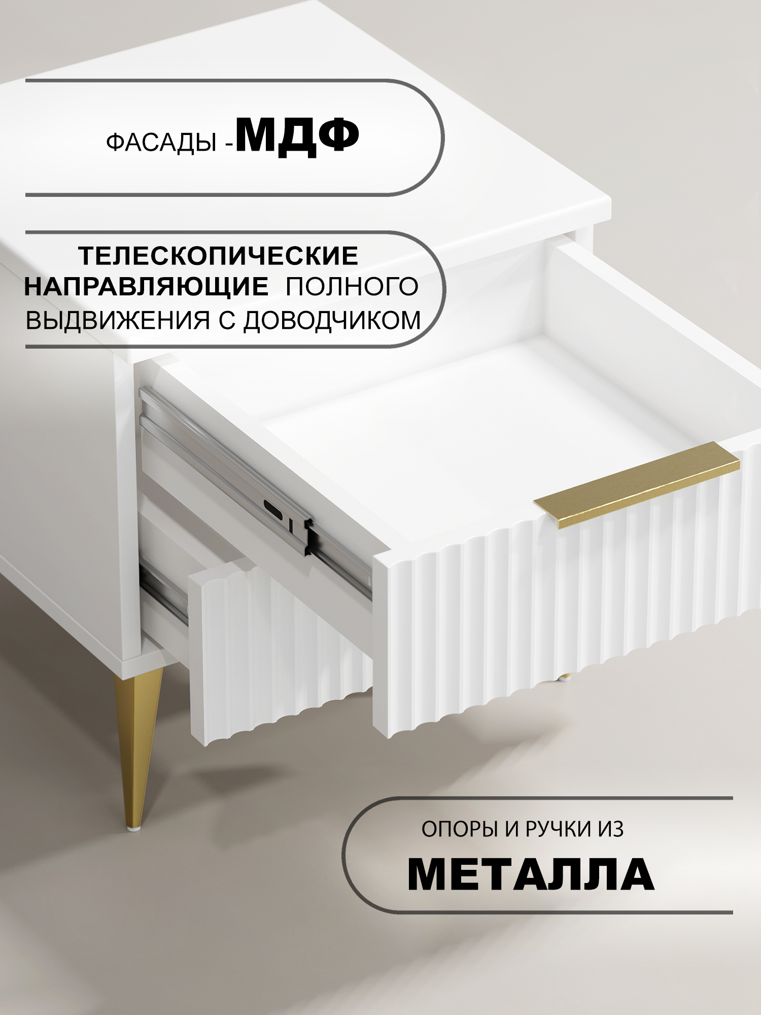Два выдвижных ящика на телескопических направляющих