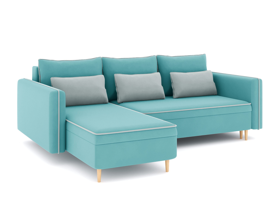 Диван-кровать угловой Рон еврокнижка-пантограф, велюр (Лазурный)