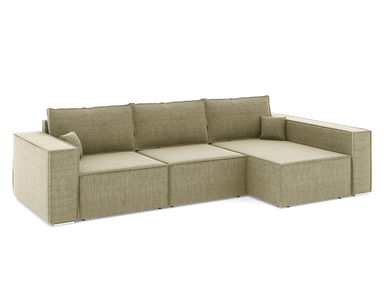 Механизм трансформации еврокнижка. Каркас ДСП, ДВП, ЛДСП, фанера, брус хвойных пород. Спальное место 2400х1470мм. Наполнение высокоэластичный ППУ. Ящик для белья в оттоманке и в основании дивана. Наполнение подушек-крошка ППУ, чехлы больших подушек съёмные на молнии. Высота сиденья от пола 420мм. Глубина сиденья без подушек 900мм. В комплекте 3 больших подушки и 2 декоративных.