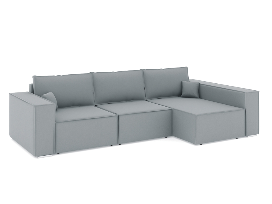 Механизм трансформации еврокнижка. Каркас ДСП, ДВП, ЛДСП, фанера, брус хвойных пород. Спальное место 2400х1470мм. Наполнение высокоэластичный ППУ. Ящик для белья в оттоманке и в основании дивана. Наполнение подушек-крошка ППУ, чехлы больших подушек съёмные на молнии. Высота сиденья от пола 420мм. Глубина сиденья без подушек 900мм. В комплекте 3 больших подушки и 2 декоративных.