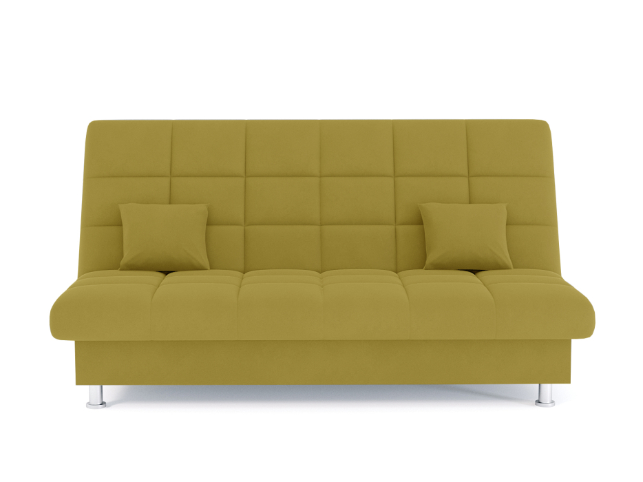 Механизм трансформации книжка. Каркас металлический. Наполнение высокоэластичный ППУ. Жёсткость средняя. Ящика для белья есть. Наполнение подушек-крошка ППУ, чехлы подушек несъёмные. Высота сиденья от пола 400мм. Глубина сиденья без подушек 600мм. В комплекте 2 декоративные подушки.