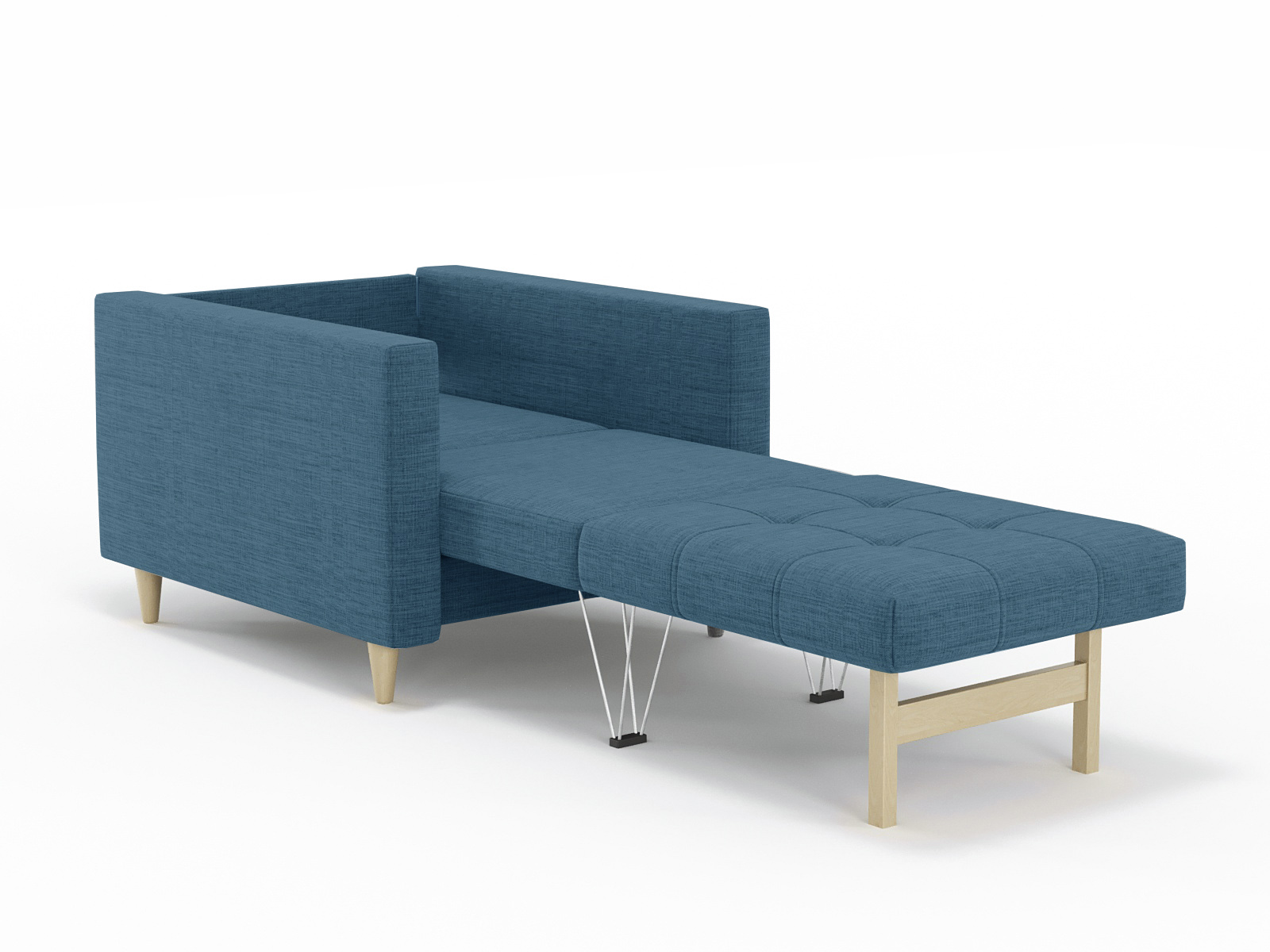 Кресло-кровать для отдыха. Каркас ДСП, ДВП, ЛДСП, фанера, брус хвойных пород. Спасльное место 1900х610. Наполнение высокоэластичный ППУ. Наполнение подушки-крошка ППУ. Высота сиденья от пола 440мм. Глубина сиденья 580мм. Опора массив березы, высота опоры 100мм.