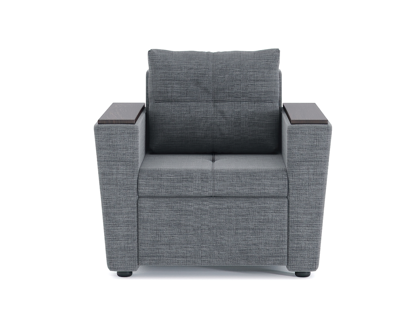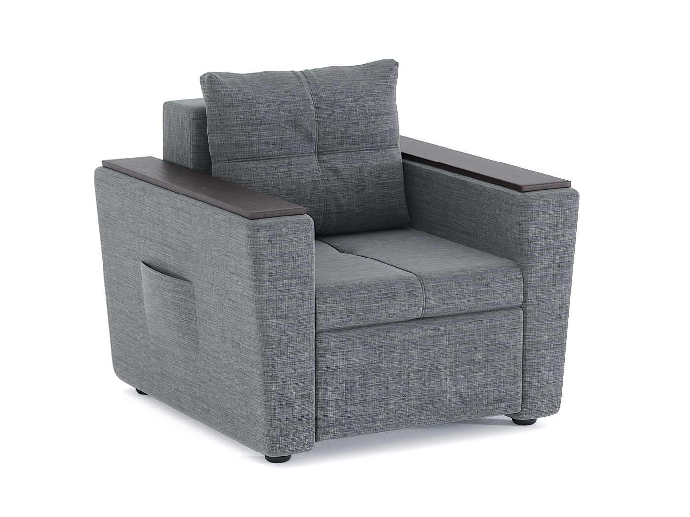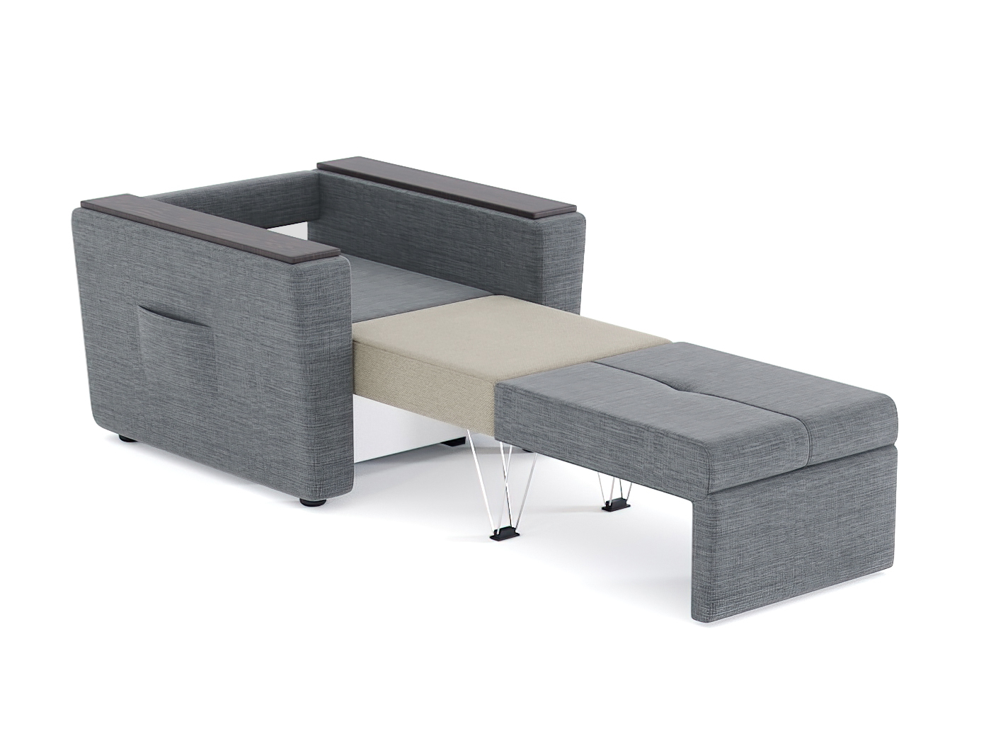Кресло-кровать для отдыха. Каркас ДСП, ДВП, ЛДСП, фанера, брус хвойных пород. Спальное место 1900х600мм. Наполнение высокоэластичный ППУ. Наполнение подушки-крошка ППУ. Высота сиденья от пола 420мм. Глубина сиденья без подушки 640мм.
