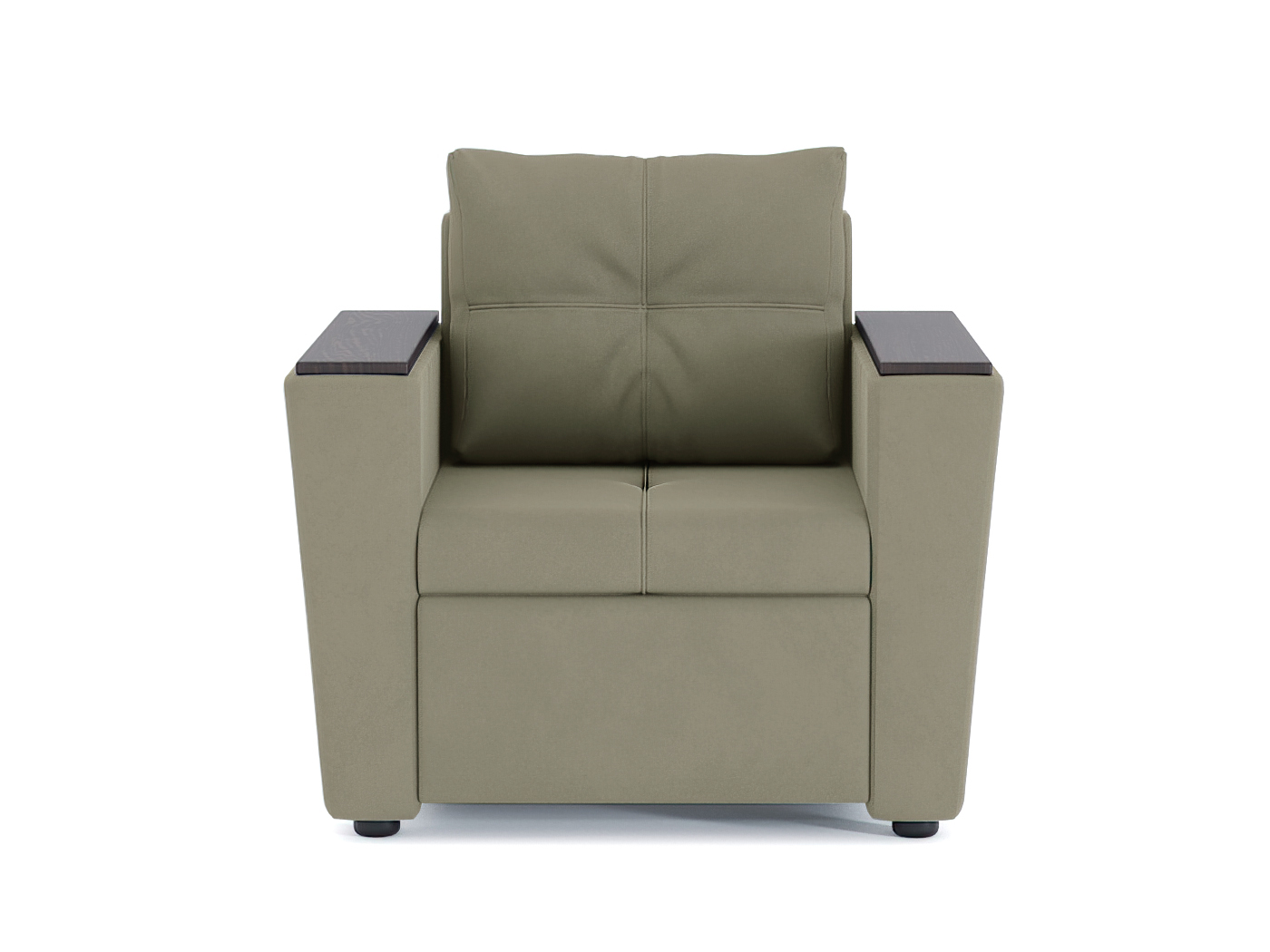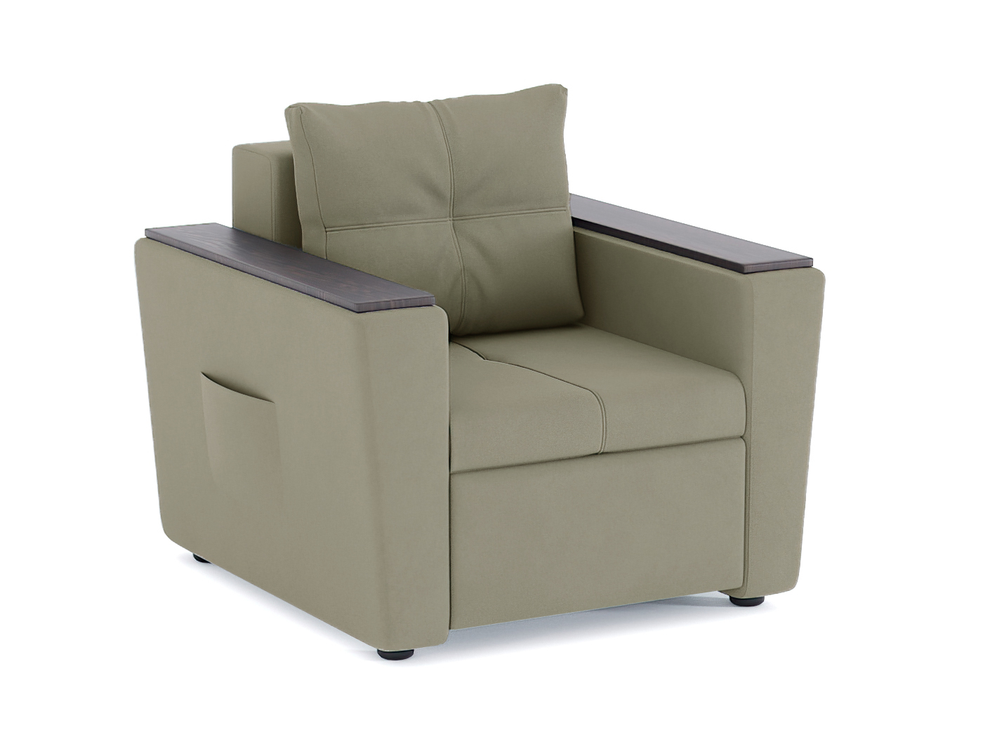 Кресло-кровать для отдыха. Каркас ДСП, ДВП, ЛДСП, фанера, брус хвойных пород. Спальное место 1900х600мм. Наполнение высокоэластичный ППУ. Наполнение подушки-крошка ППУ. Высота сиденья от пола 420мм. Глубина сиденья без подушки 640мм.