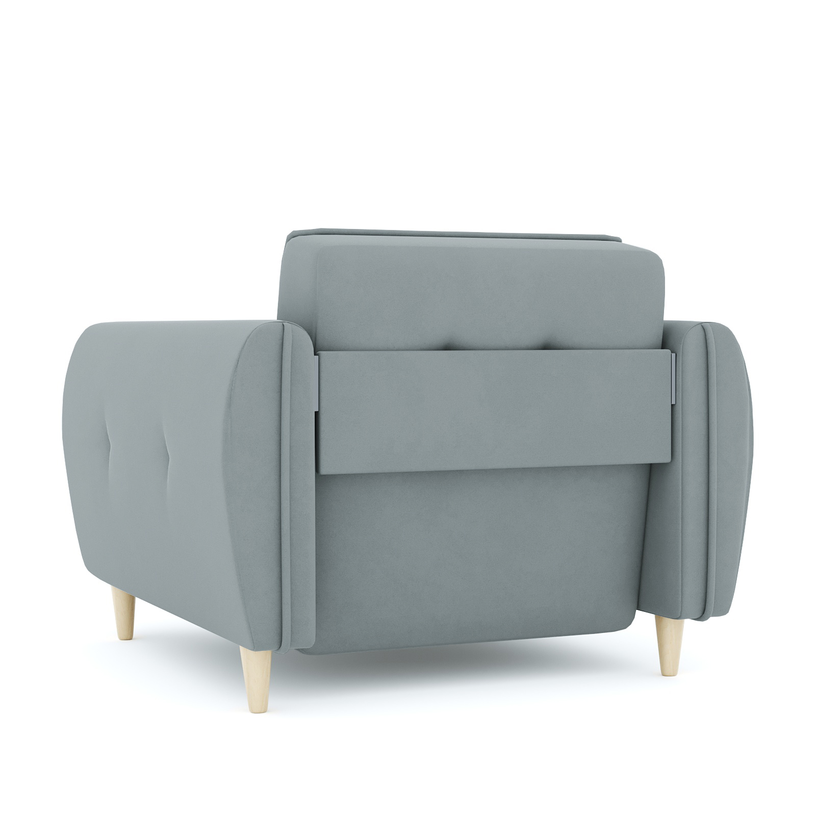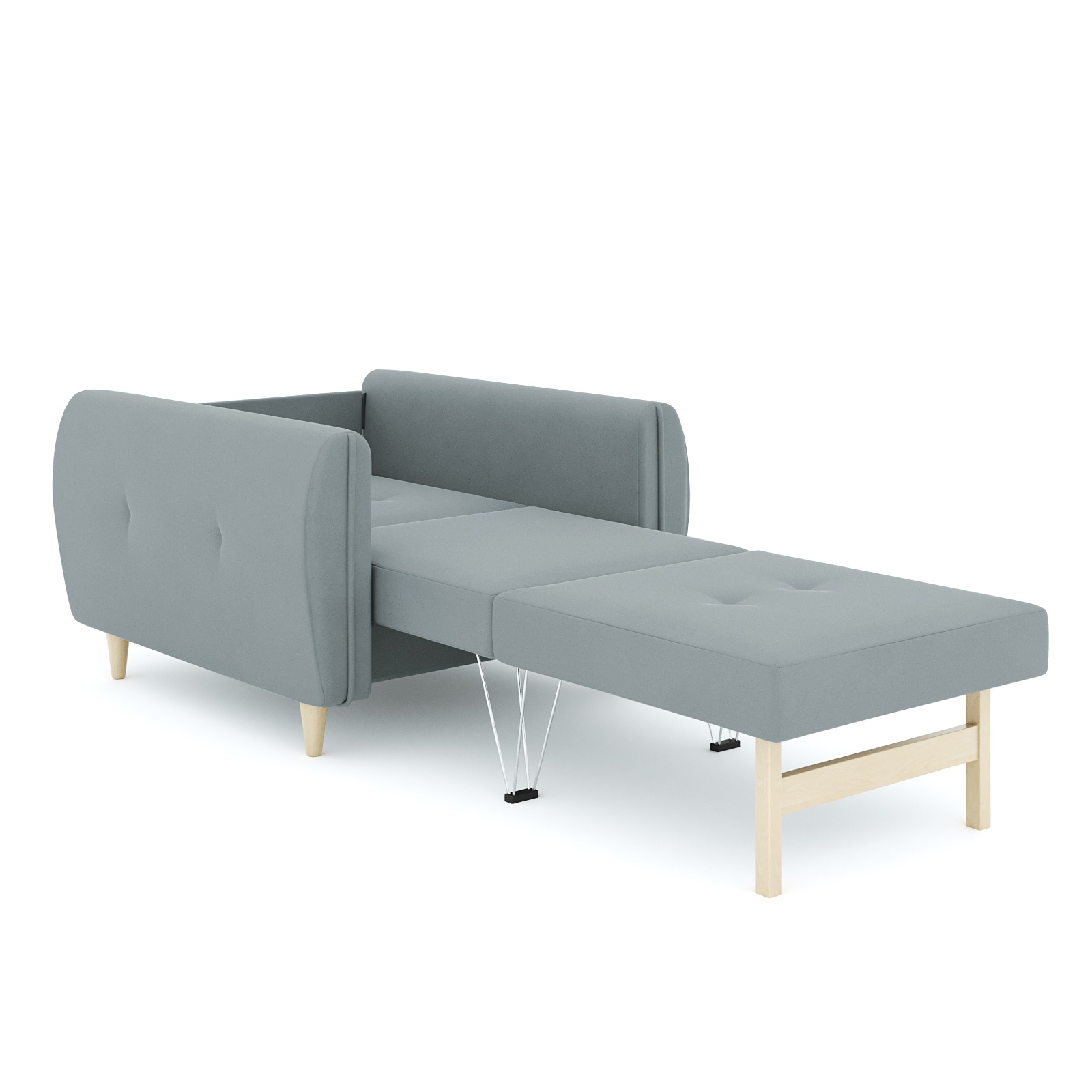 Кресло-кровать для отдыха. Каркас ДСП, ДВП, ЛДСП, фанера, брус хвойных пород. Спальное место 1900х600мм. Наполнение высокоэластичный ППУ. Наполнение подушки-крошка ППУ. Высота сиденья от пола 440мм. Глубина сиденья без подушки 600мм. Опора массив березы. Высота опоры 100мм.