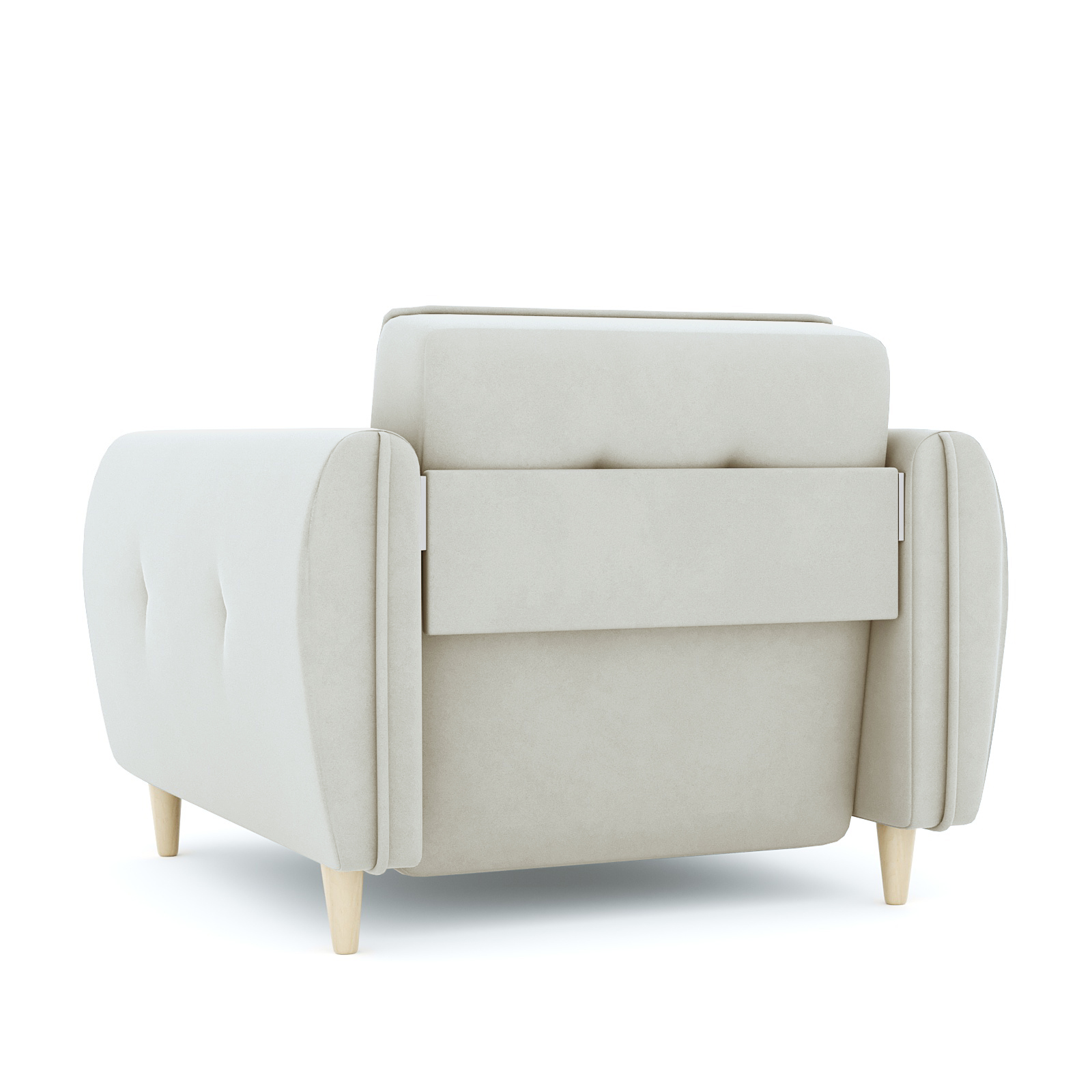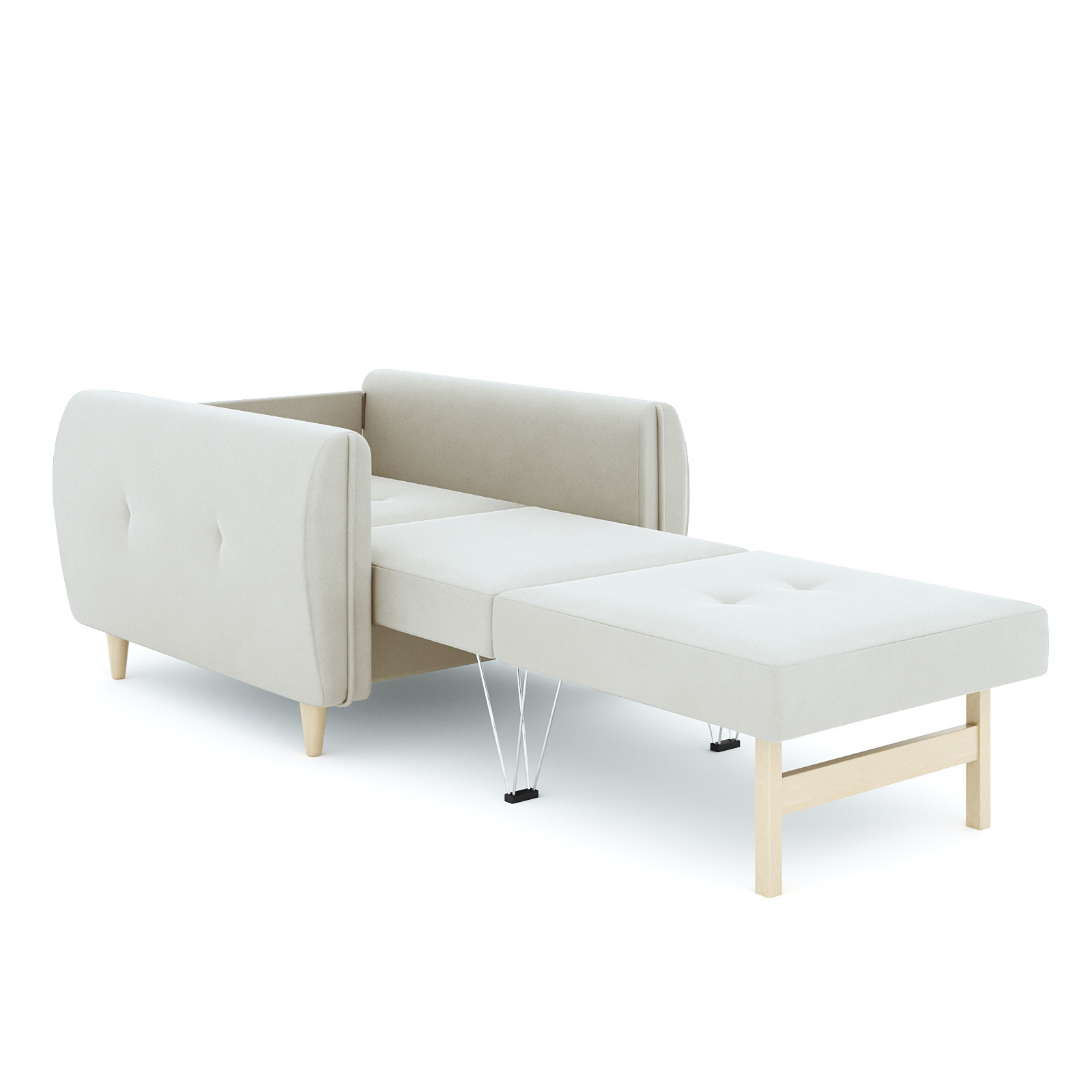 Кресло-кровать для отдыха. Каркас ДСП, ДВП, ЛДСП, фанера, брус хвойных пород. Спальное место 1900х600мм. Наполнение высокоэластичный ППУ. Наполнение подушки-крошка ППУ. Высота сиденья от пола 440мм. Глубина сиденья без подушки 600мм. Опора массив березы. Высота опоры 100мм.
