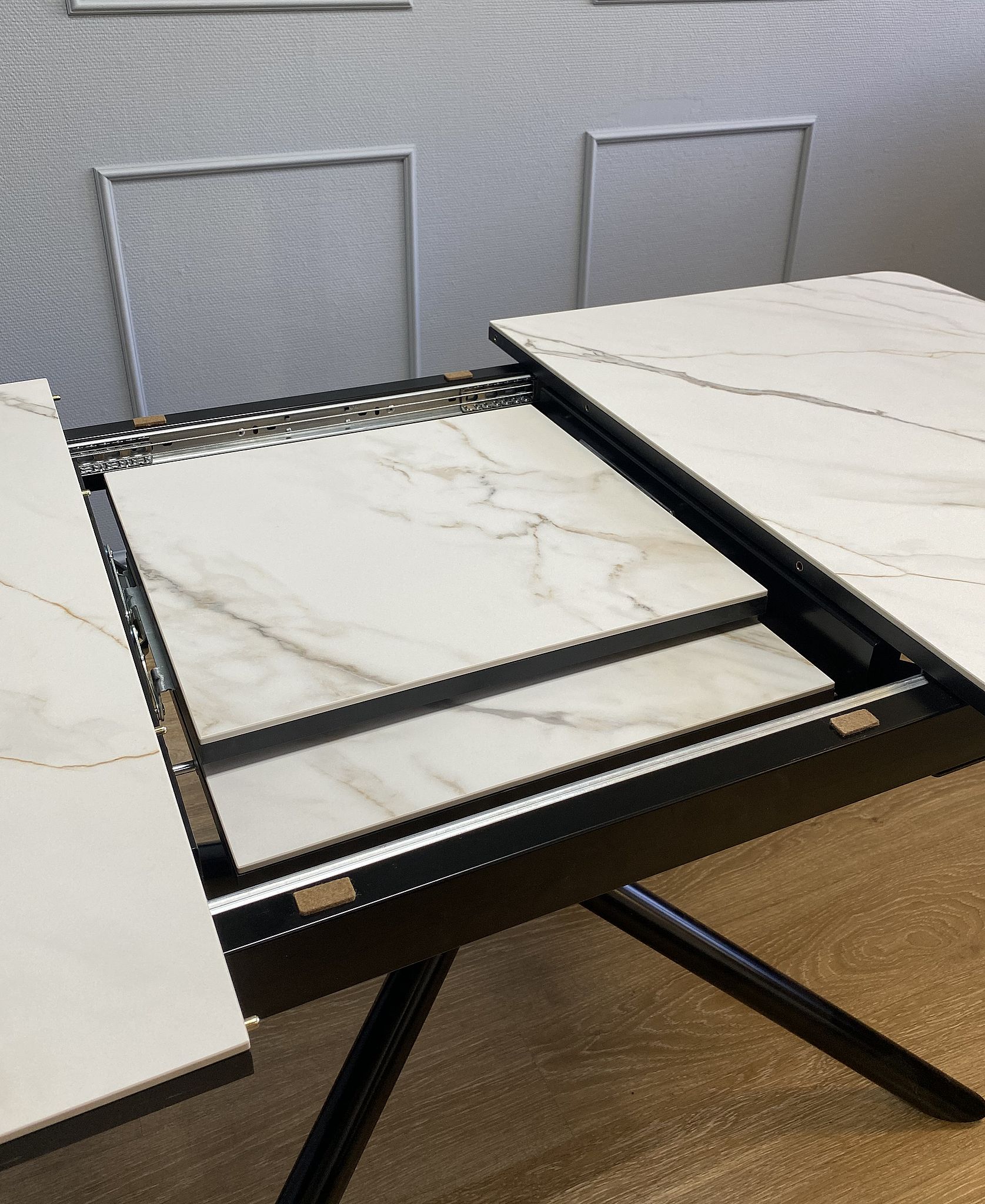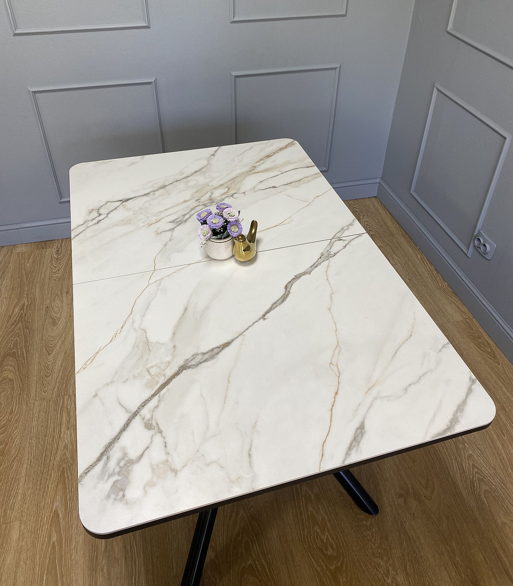 Один из лучших столов КЕННЕР по своим характеристикам. Во-первых, оптимальный размер для семьи из 4-х человек; во-вторых, покрытие из керамики (на таком размере найти аналог невозможно!); в-третьих, центральная опора, с которой удобно на любой кухне; в-четвертых, большая вставка, выполненная по технологии "дельфин", без петель, которые могут повредить ее при неаккуратном обращении; в-пятых, скруглённые углы. Сами опоры не прямоугольной, а круглой формы без острых частей.