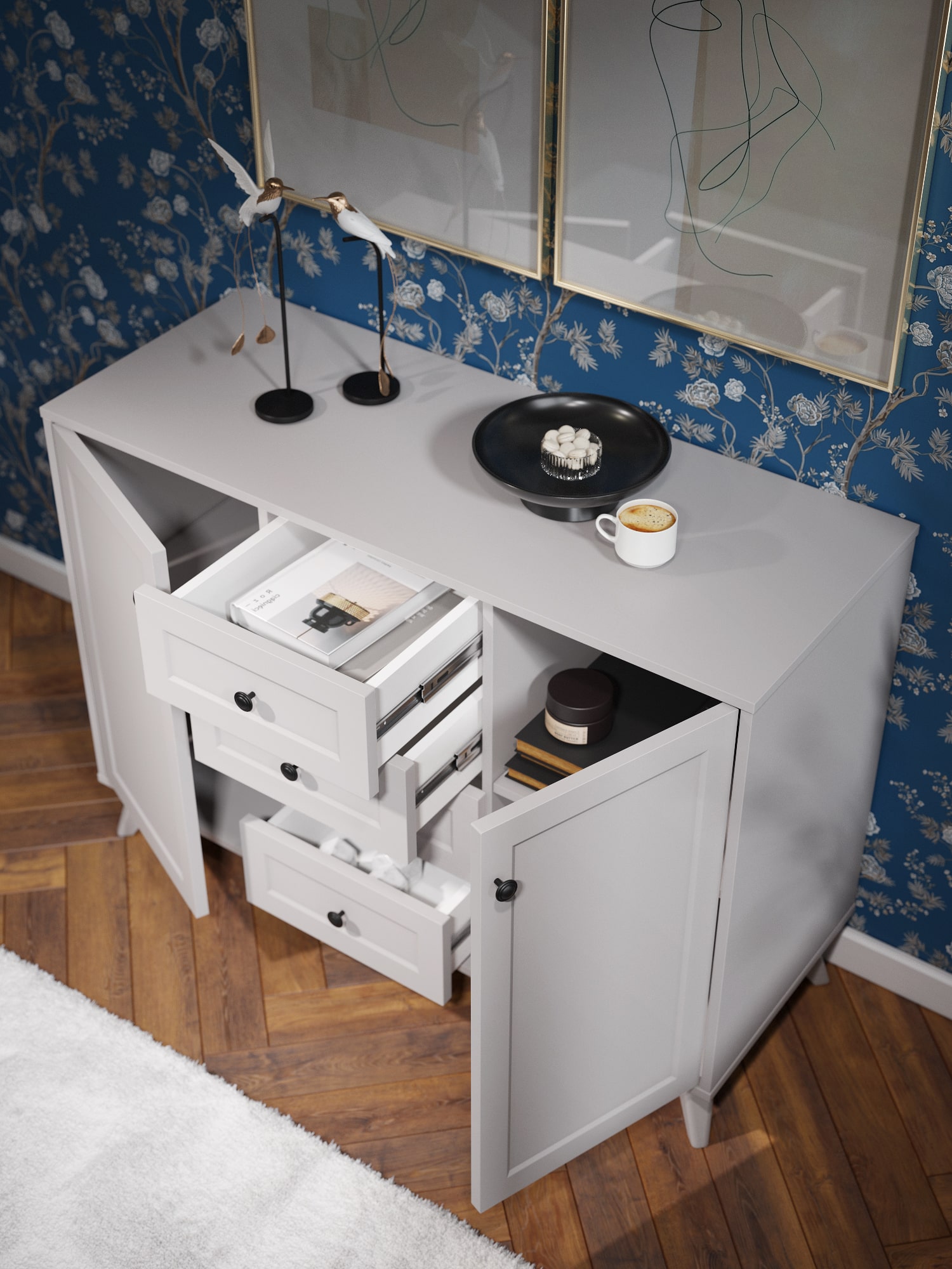 4 выдвижных ящика на телескопических направляющих полного выдвижения