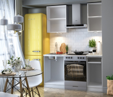 Длина данного исполнения всего 1 метр, что делает его идеальным выбором для ограниченных пространств. Размеры 100×215×60 см (не учитывая размера вытяжки и плиты) позволяют разместить необходимый минимум для организации кухонной зоны, не перегружая интерьер.