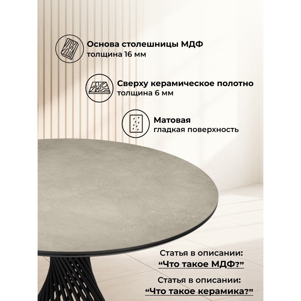 Керамический стол Вивиен 110 (чёрная нога) Код I0000448950