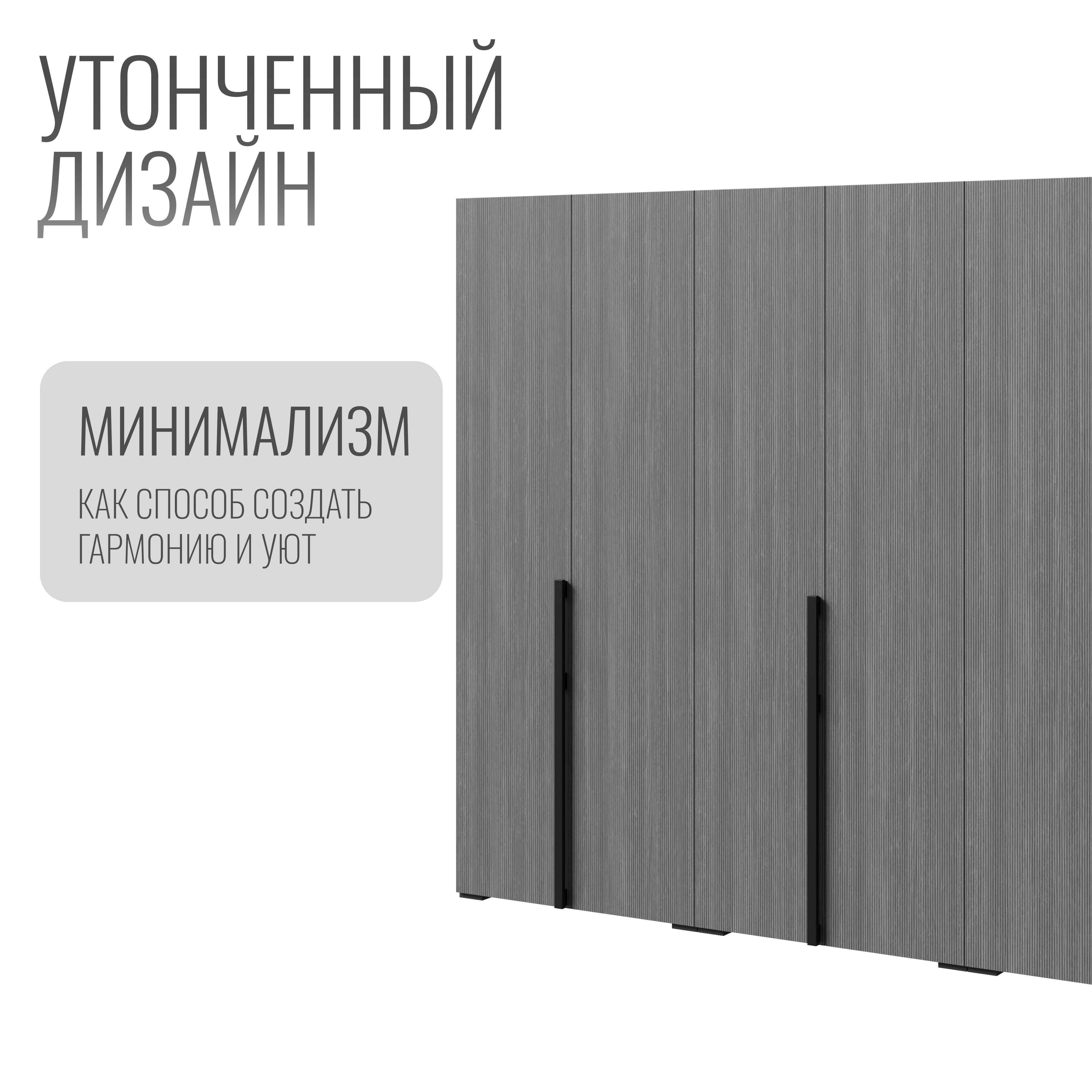 Этот шкаф выполнен в стильном сером цвете, который легко впишется в любой интерьер, добавляя ему современности и элегантности. Его вместительность позволяет разместить все необходимые вещи: от одежды до постельного белья, обеспечивая легкий доступ к каждому предмету.