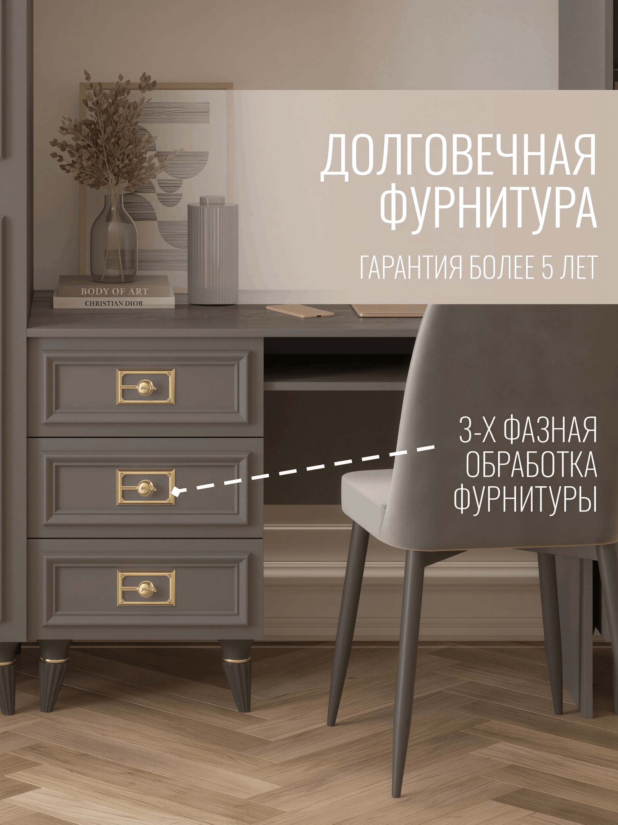 Изысканная Элегантность: Формы, узоры и детали этого стола создают атмосферу изысканности и роскоши. Он не просто рабочее место, это настоящее визуальное украшение вашей спальни.
