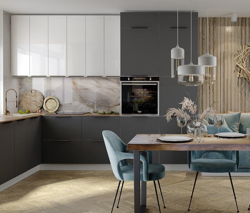Модульная кухня Коктейль «Черный графит / Белый глянец» в угловом исполнении длиной 3 метра — это эффективное решение для организации просторного и функционального кухонного пространства. Контрастное сочетание матовых и глянцевых поверхностей, премиальное лаковое покрытие KUPSIROL для белых фасадов, качественная фурнитура и продуманная угловая конструкция обеспечивают не только привлекательный внешний вид, но и исключительное удобство в повседневном использовании.