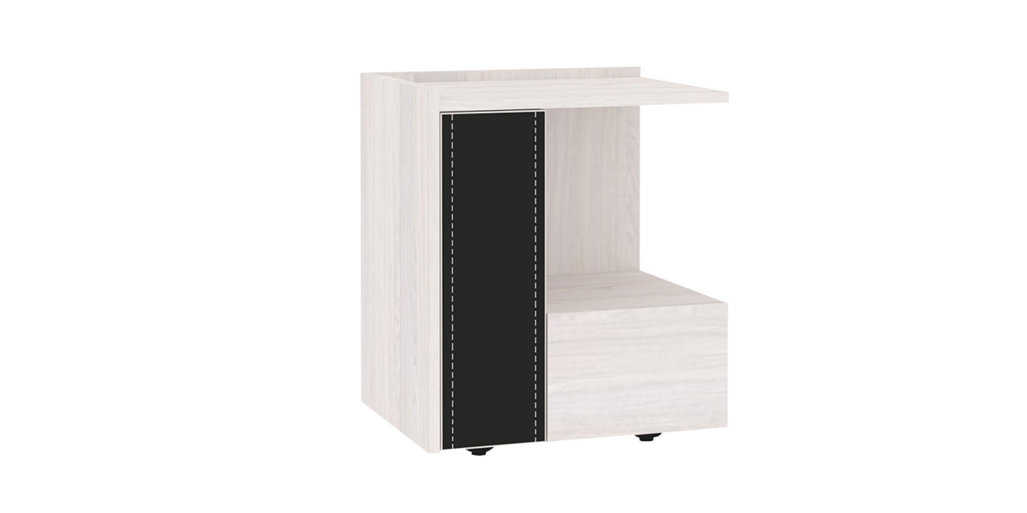 Стильная и практичная 42 Тумба прикроватная не оставит никого равнодушным. Благодаря оригинальному стилистическому решению и вставкам из экокожи черного цвета, тумба смотрится одновременно строго и элегантно. Универсальная конструкция сочетает в себе открытую полку, выдвижной ящик, нишу с дверью на петлях, что очень удобно для хранения вещей, которые так необходимы утром и вечером перед сном. Оптимальная высота прикроватной тумбочки позволит разместить в боковом отделении даже ноутбук.