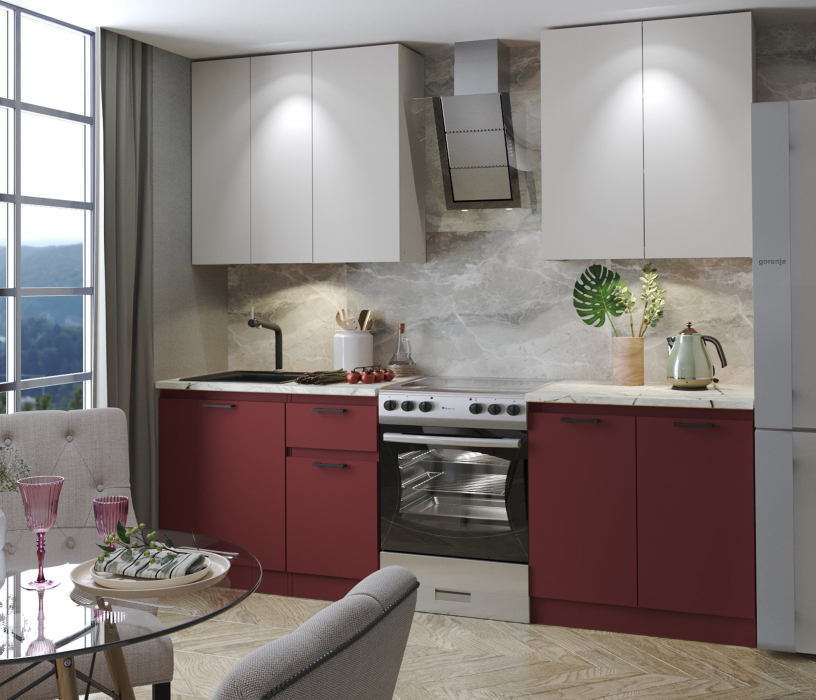 Шкаф навесной ш60 - 2 шт Шкаф навесной ш80 Шкаф напольный с ящиками ш60 Шкаф напольный ш60 Материал фасада-ЛДСП, Кромка ABS Материал каркаса-ЛДСП, Кромка ABS Материал ручек-Пластик Цвет ручек-Черный матовый Навес фасадов-Универсальный Тип направляющих-Шариковые полного выдвижения Тип сборки-Модули можно переставлять Вес, кг-138.4 - Петли четырехшарнирные с доводчиком - Направляющие шариковые полного выдвижения - Ручки пластиковые. - Цвет ручек - Черный матовый - Кухня столешницей не комплектуется. - Навесные модули имеют две внутренних полки, напольные модули одну внутреннюю полку - Экологически безопасное ЛДСП с классом эмиссии летучих веществ Е1 Опора подпятник с гвоздем Полкодержатель 5,4 мм металл Цвет ручек - Черный матовый Задняя стенка модулей белого цвета Столешница, бытовая техника, вытяжка, сушка, мойка и освещение в комплект не входят. Модульная кухня «Ревилья» - современный дизайн и продуманная функциональность Модульная кухня «Ревилья» - это сочетание стиля, практичности и комфорта. Широкий выбор напольных и навесных модулей различных размеров и конфигураций позволяет легко составить гарнитур под особенности вашего помещения - от компактной кухни до просторного кухонного пространства. Лаконичные линии, выразительные детали и современные материалы делают «Ревилью» универсальным решением для интерьера любого стиля. Функциональность и исполнение Каждый элемент кухни «Ревилья» продуман до мелочей. Навесные шкафы оснащены двумя внутренними полками, напольные — одной, что обеспечивает удобное и рациональное хранение посуды и кухонных принадлежностей. Задние стенки белого цвета придают конструкции аккуратный и эстетичный вид. Кухня не комплектуется столешницей, что даёт возможность подобрать её отдельно — под нужную текстуру, цвет и толщину, создавая индивидуальный облик гарнитура. Фурнитура и конструктивные решения • Петли четырёхшарнирные с доводчиком - лёгкое, плавное и бесшумное открывание дверей. • Шариковые направляющие полного выдвижения обеспечивают комфортное использование ящиков и доступ к их содержимому. • Ручки из пластика цвета “чёрный матовый” добавляют контраст и подчёркивают современный характер кухни. • Металлические полкодержатели диаметром 5,4 мм обеспечивают надёжное крепление и устойчивость полок. Характеристики модулей • Высота верхних шкафов - 91 см • Глубина верхних шкафов - 31,7 см • Высота нижних шкафов - 82,4 см • Глубина нижних шкафов - 51,9 см • Материал - ЛДСП 16 мм, экологический класс E1 (безопасно для жилых помещений) Важно: столешница, бытовая техника, вытяжка, мойка, сушка и освещение в комплект не входят, что даёт свободу выбора под индивидуальный интерьер.
