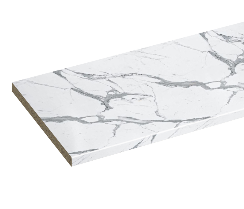 Столешниц производятся из ДСП толщиной 38 мм. Для отделки лицевой стороны применяется бумажно-слоистый пластик. Для облицовки обратной стороны плиты используются крафтовая бумага. Каплесборник 40 мм.