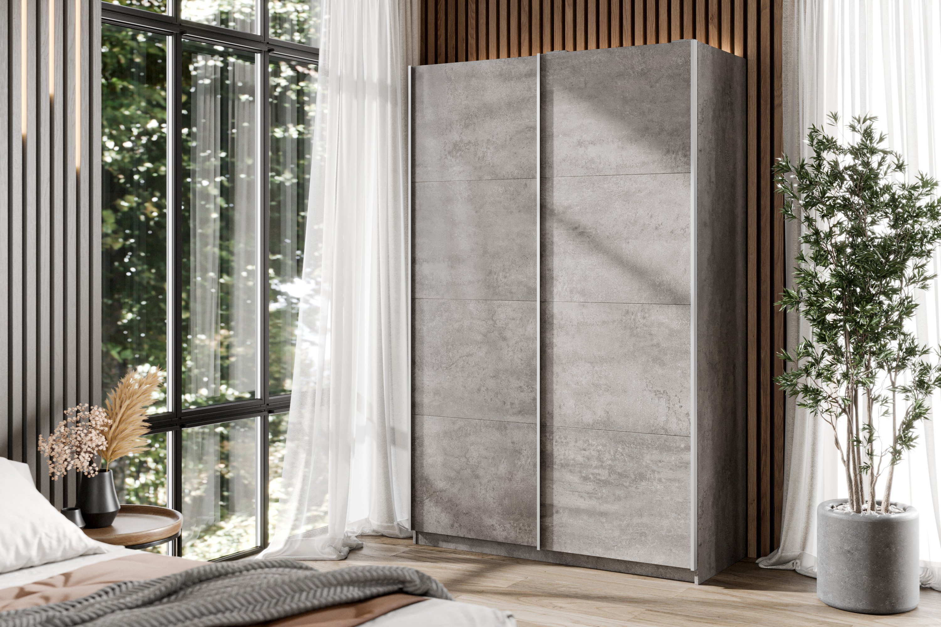 Шкаф-купе Smart 1624 2х дверный (фасады ЛДСП) профиль серебро (Бетон)
