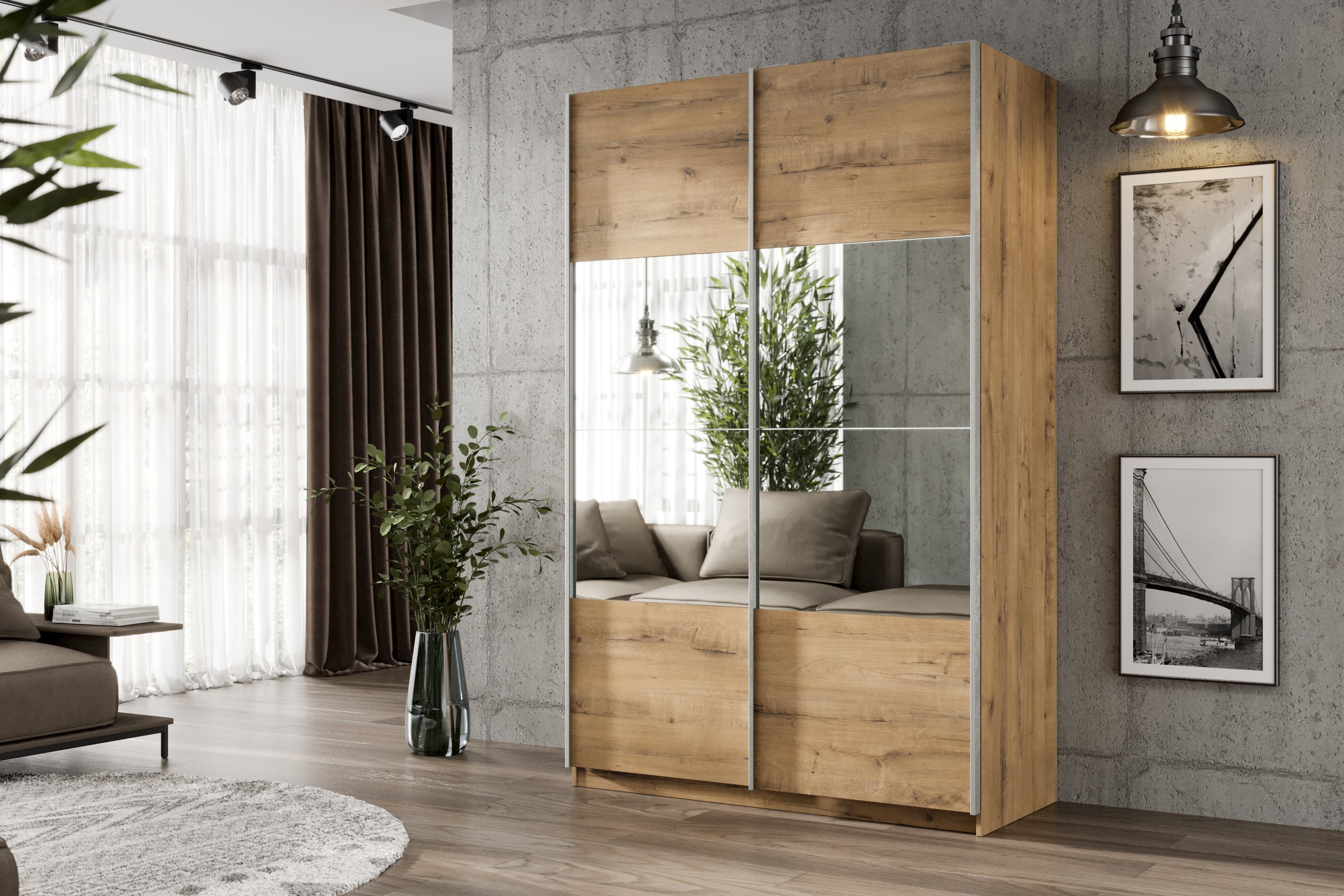 Шкаф-купе Smart 1624 2х дверный (фасады ЛДСП/зеркало) профиль серебро (Бунратти) Код I0000411339