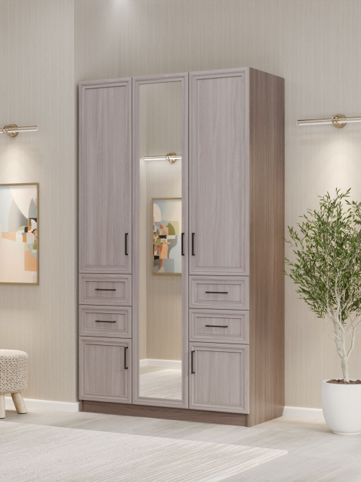 Шкаф распашной ШК‑3/4 — функциональное решение для организации хранения в спальне, гостиной или прихожей. Трёхстворчатая конструкция с двумя штангами, полками и выдвижными ящиками позволяет рационально использовать пространство. Сочетание материалов (МДФ для фасадов и ЛДСП для корпуса) обеспечивает прочность, долговечность и эстетичный внешний вид изделия. Лаконичный дизайн шкафа гармонично вписывается в современные интерьеры.