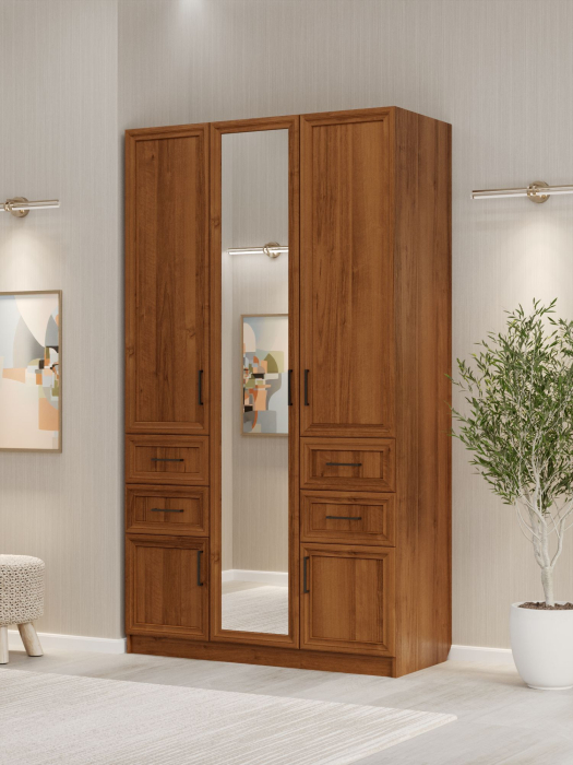 Шкаф распашной ШК‑3/4 — функциональное решение для организации хранения в спальне, гостиной или прихожей. Трёхстворчатая конструкция с двумя штангами, полками и выдвижными ящиками позволяет рационально использовать пространство. Сочетание материалов (МДФ для фасадов и ЛДСП для корпуса) обеспечивает прочность, долговечность и эстетичный внешний вид изделия. Лаконичный дизайн шкафа гармонично вписывается в современные интерьеры.