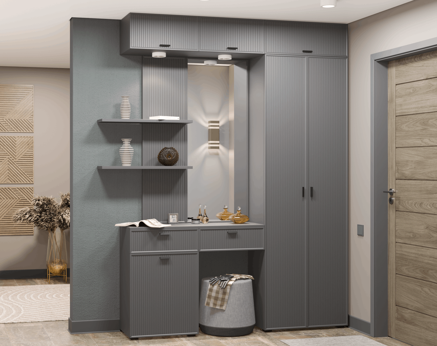 Модульная прихожая Стелла композиция 8 (Серый Оникс Ребристый) Код I0000455883