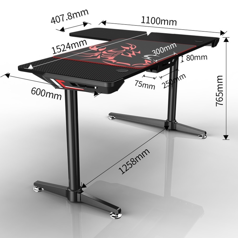 Стол для компьютера (для геймеров) Eureka L60, чёрный Стол для компьютера Eureka L60 Стол для геймеров Eureka L60 Gaming Desk - идеальный выбор тех, у кого много игровых девайсов. L60 имеет 60-дюймовую столешницу с гладким покрытием в стиле карбон. На столе для геймеров Eureka L60 можно с лёгкостью разместить несколько мониторов, игровую консоль, клавиатуру и много другого оборудования. А благодаря специальной системе управления кабелями, на вашем столе никогда не будет лишних проводов. Преимущества L-дизайн МДФ с карбоновым покрытием Широкое пространство для ног В комплекте коврик для мыши Легкий в сборке, перемещении, эксплуатации Технические характеристики Материал основы стола: Легированная сталь Материал столешницы: МДФ с карбоновым покрытием Размеры стола: Высота 76,5 см; Мин. глубина столешницы 60 cм; Макс. глубина столешницы 110 cм;Ширина столешницы 152 см. Вес упаковки с товаром 43,5 кг Вес товара без упаковки 36 кг Декларация соответствия Да