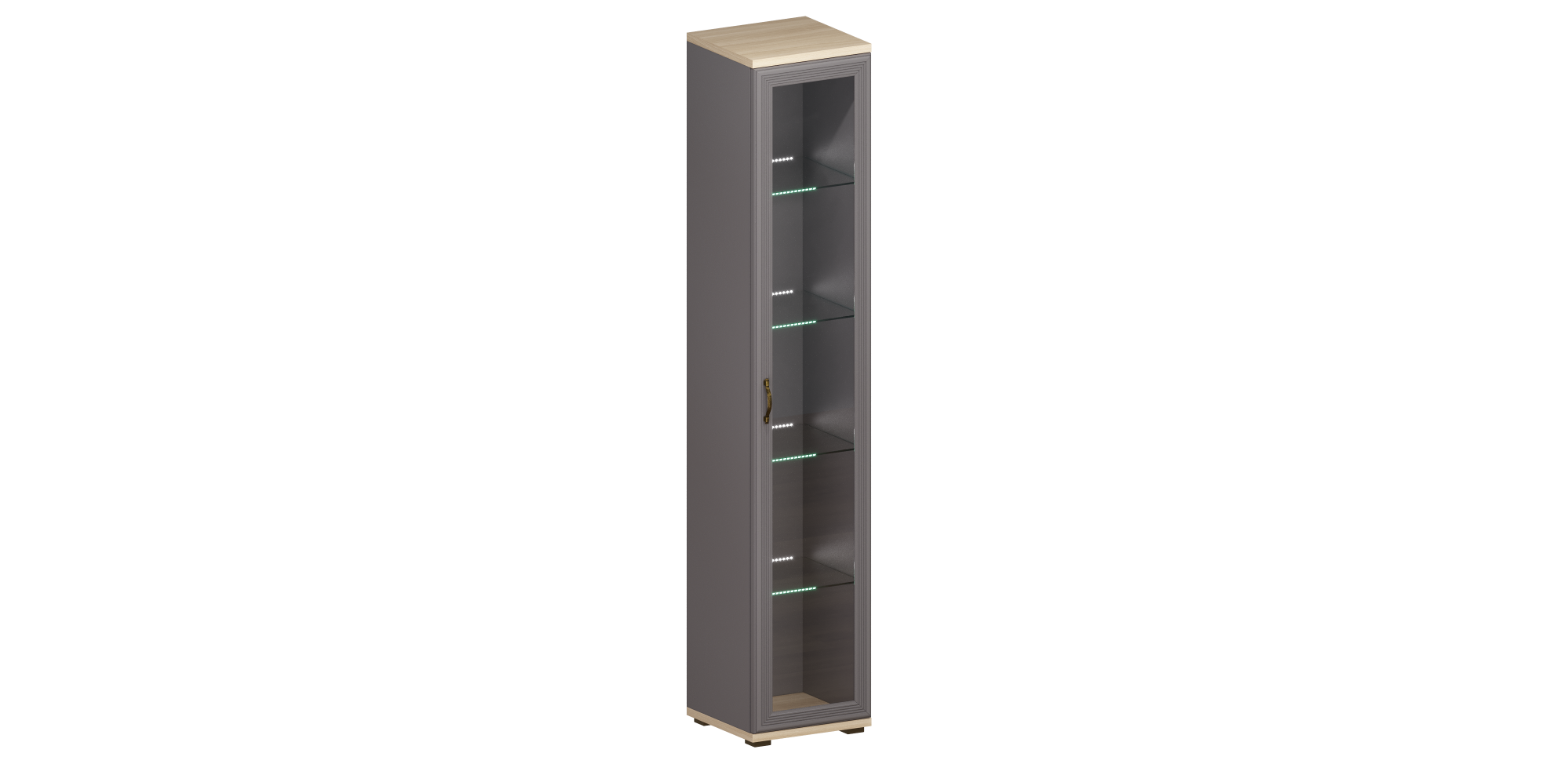 Модульная система Карина Шкаф ШК-1067 пенал для посуды со стеклом (Ясень Асахи/Серый Оникс) Код I0000458067
