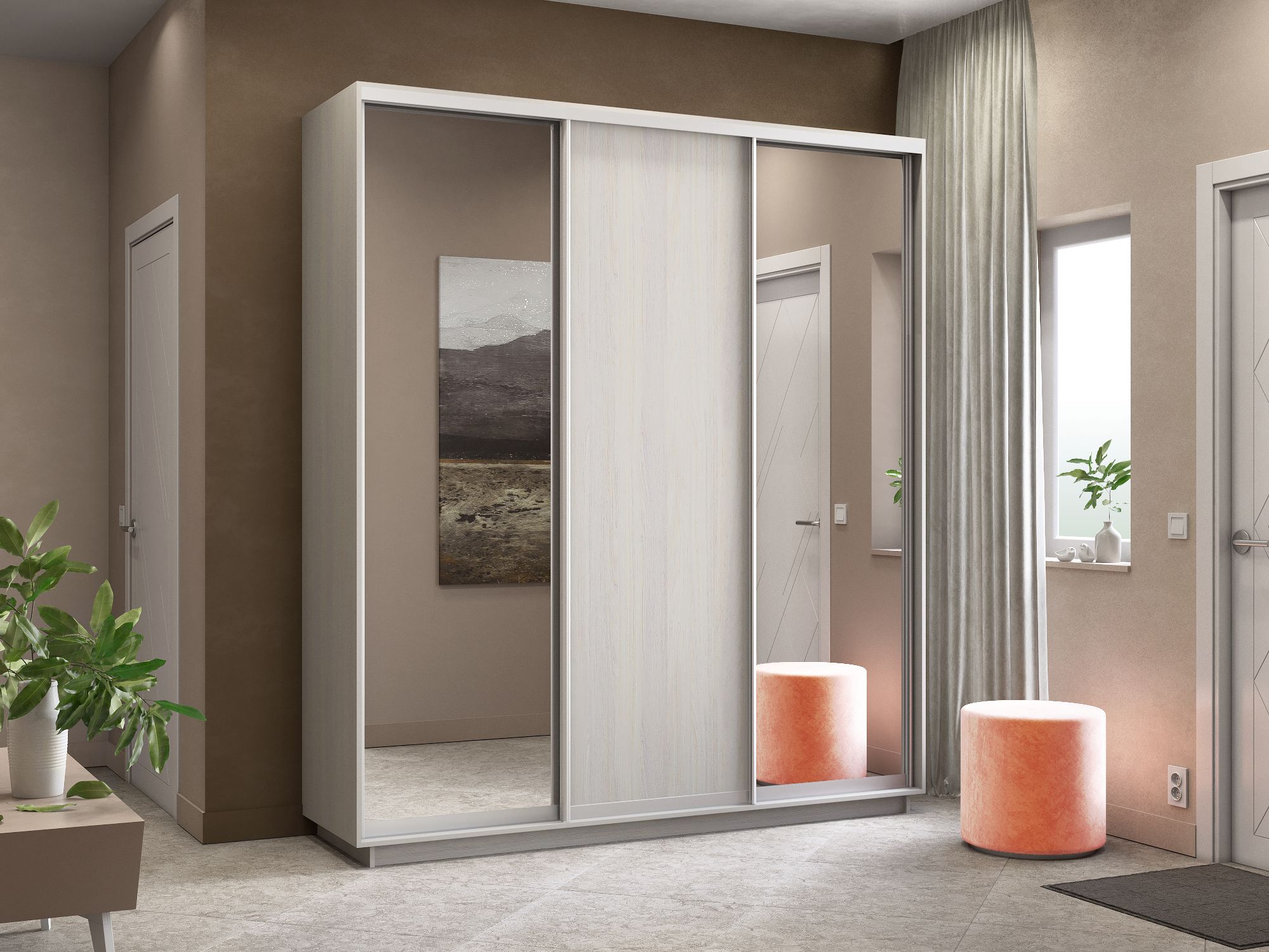 Отзывы о Столплит Шкаф-купе Экспресс Медиум (2 зеркала) трио 2400 x 2100 x 600 Ясень Анкор светлый
