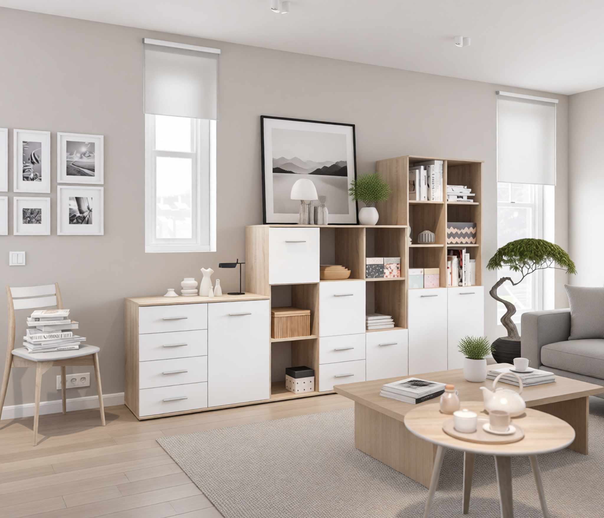 Комод выполнен в лаконичном дизайне, светлое покрытие фасадов позволяет смотреться этому предмету мебели стильно и не громоздко.