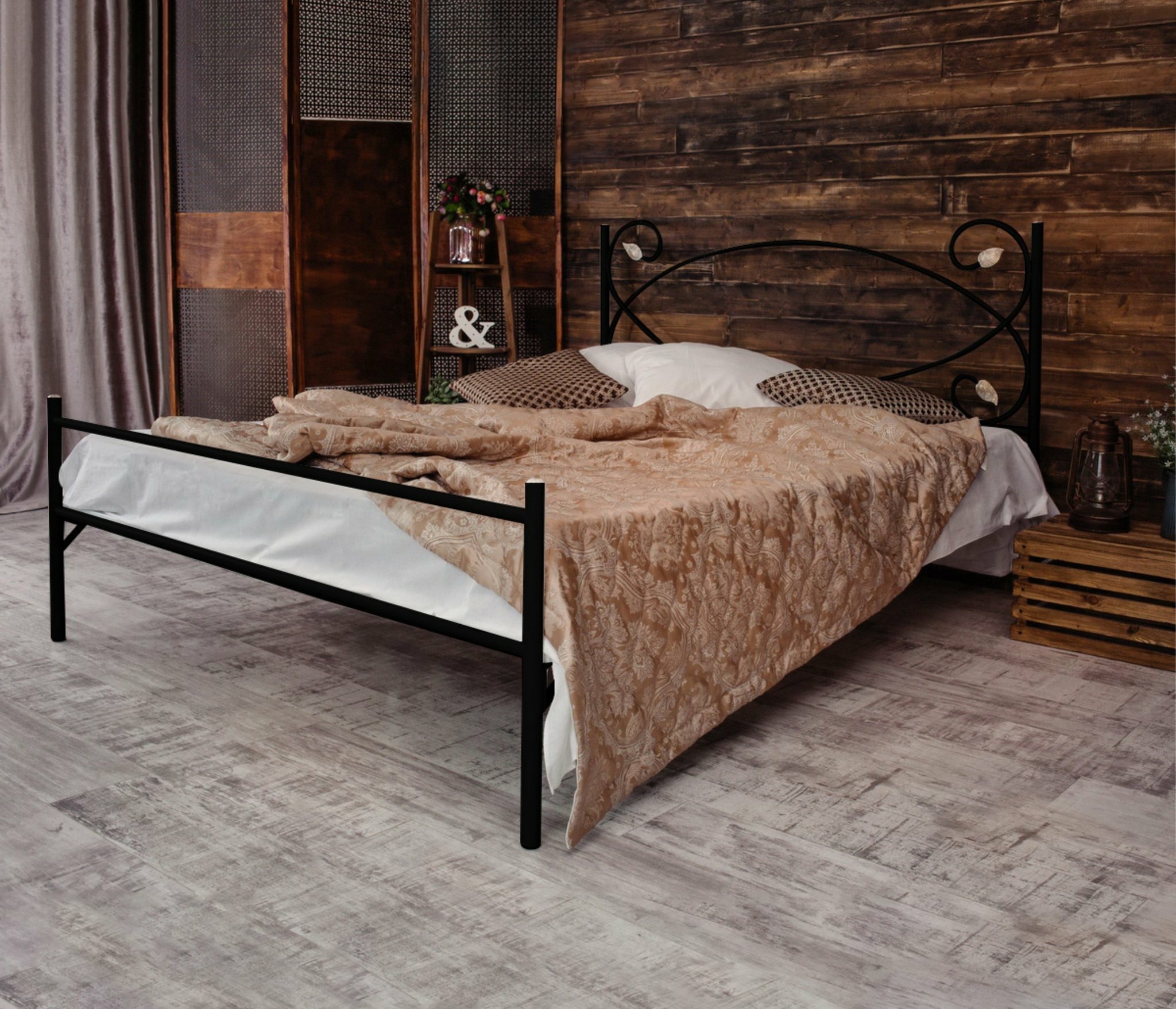 Кованая кровать Виктория 1.6 с одной спинкой (Черный)