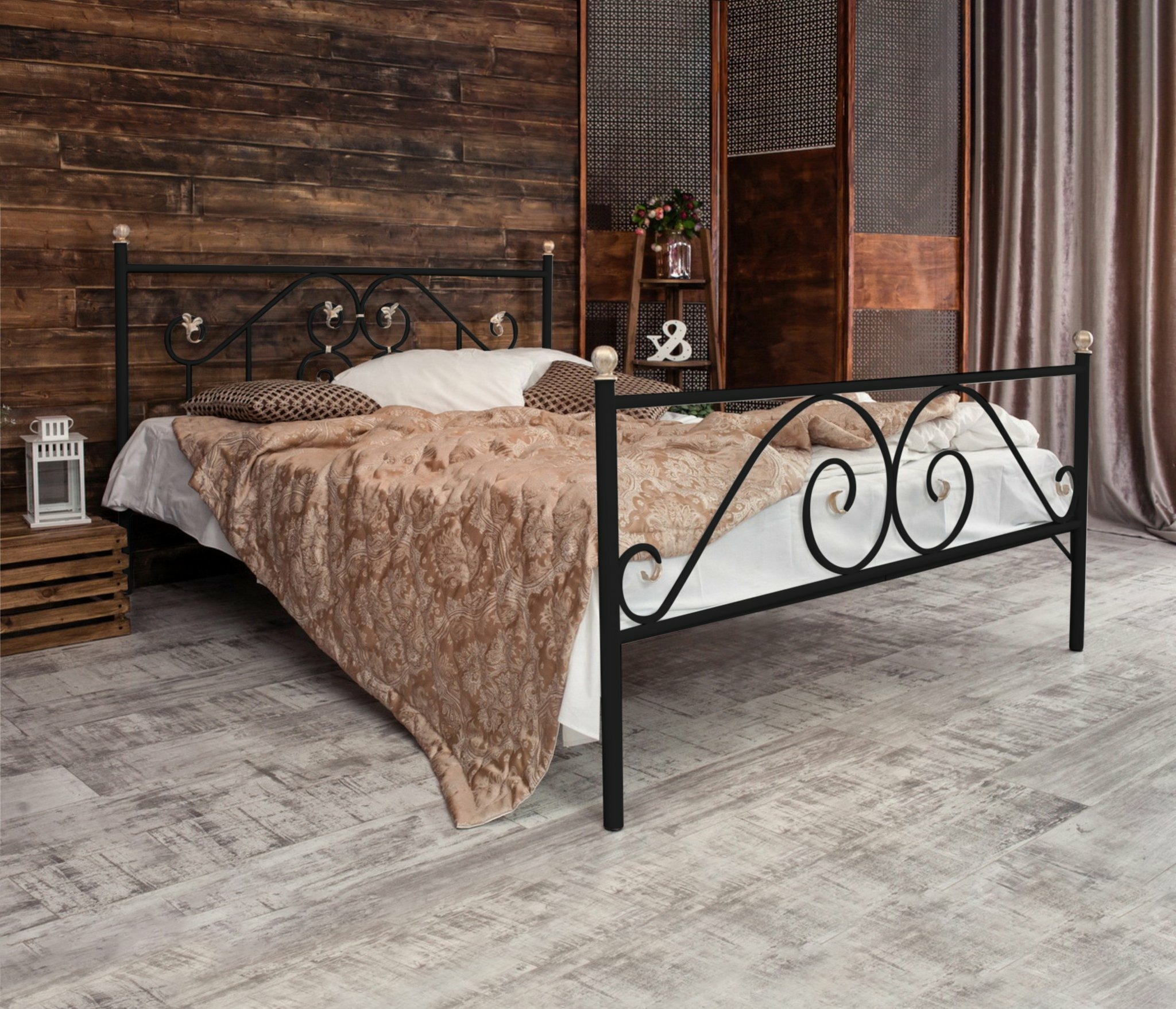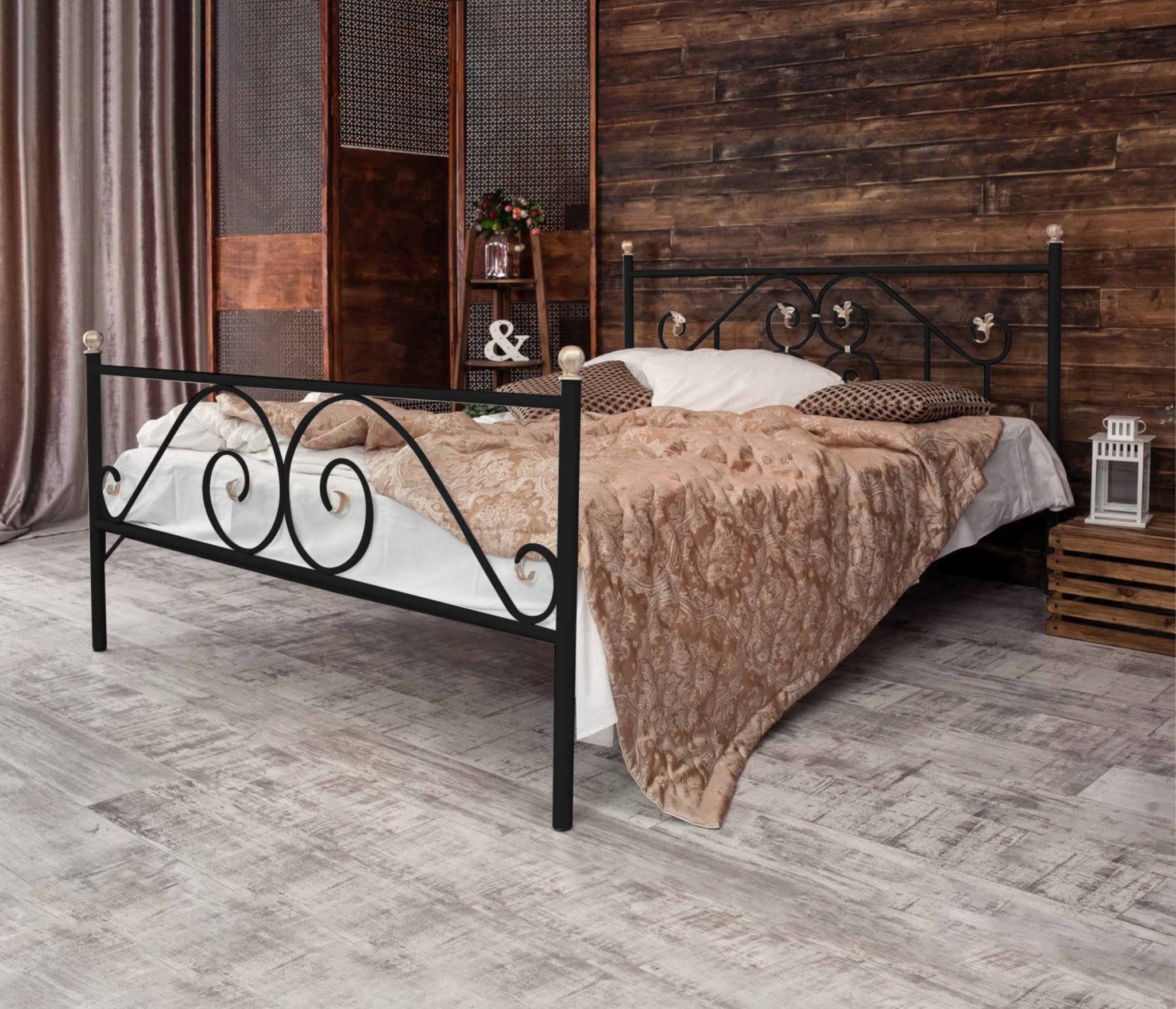 Кованая кровать Камелия - это изысканная, утонченная модель, в которой чистота линий соединилась с изяществом и элегантностью декора изголовья и изножья.