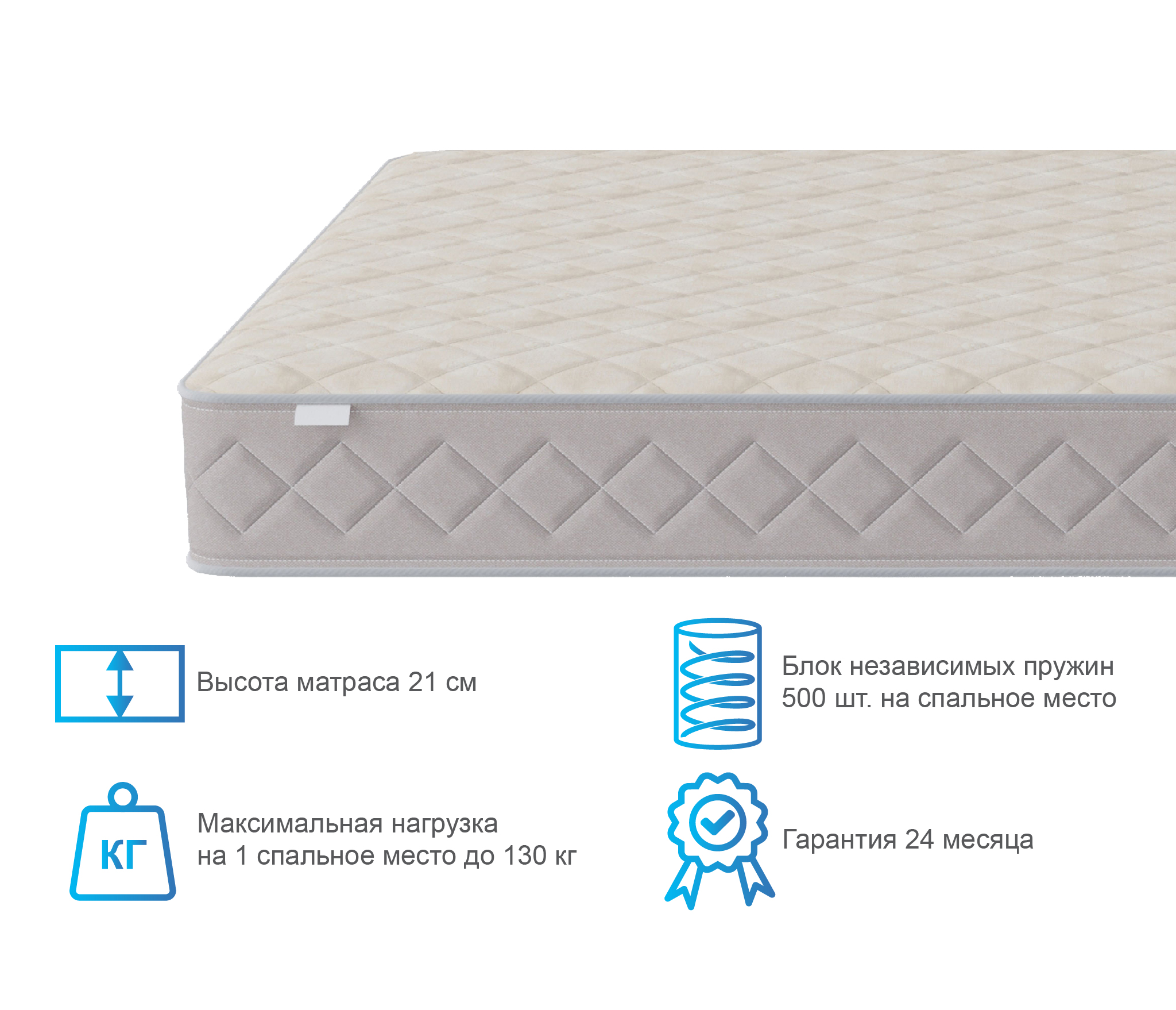 Это классическая конструкция матраса, универсальный блок пружин с точечной поддержкой, термоволокно, которое защитит комфортные слои от соприкосновения с пружинами и соответственно истерания. Слои кокоса добавят необходимой жесткости и прочности.