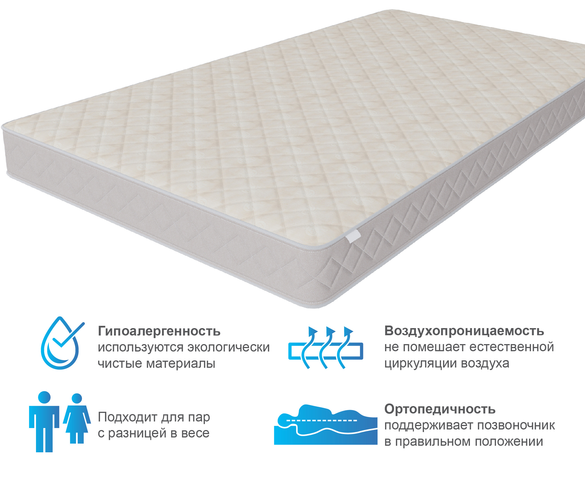 Это классическая конструкция матраса, универсальный блок пружин с точечной поддержкой, термоволокно, которое защитит комфортные слои от соприкосновения с пружинами и соответственно истерания. Слои кокоса добавят необходимой жесткости и прочности.